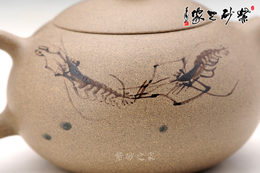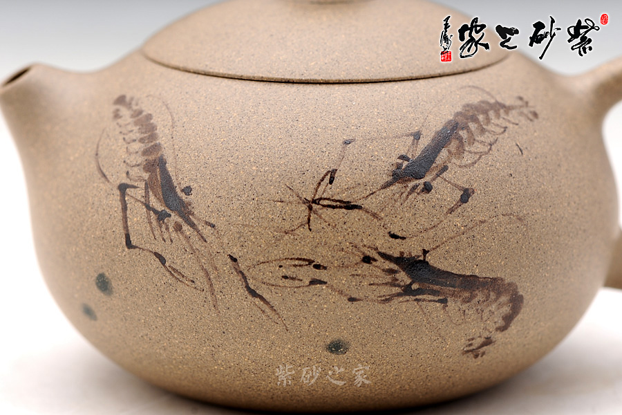 壺身泥繪斗樂蝦情趣怡然,十分的熱鬧,增加此壺的趣味性,充滿了動感,本站推薦收藏!