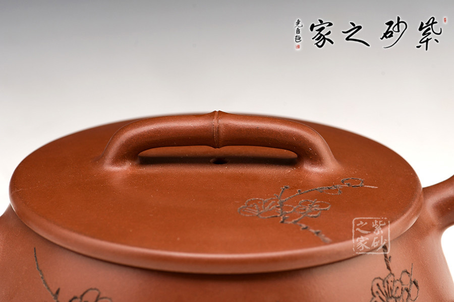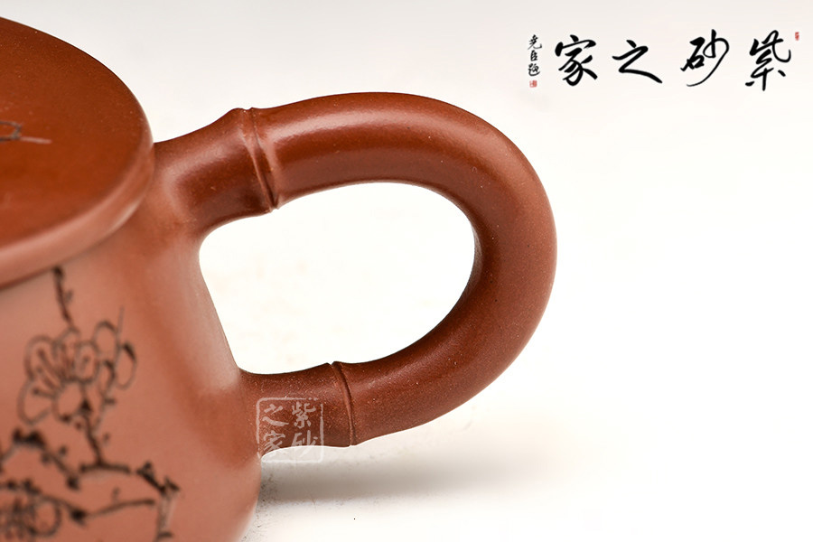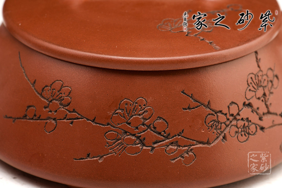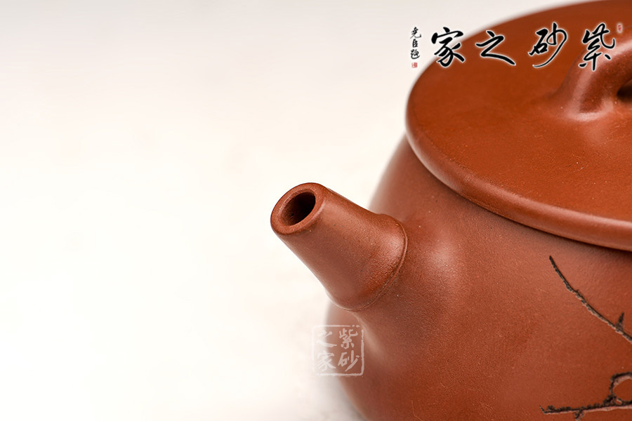 特點:質(zhì)感綿密、緊實細(xì)緻,持之扎實沉重、紅潤豔麗,泥中極品,無以倫比;泥胚含少許原礦顆粒,沖淋熱水后色變極大,呈紅中帶紫,養(yǎng)壺易現(xiàn)“包漿”之美。