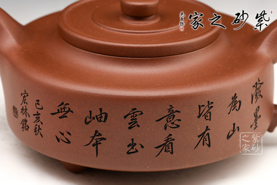 曼生夜讀,撥弄羅盤而有感羅盤雖如銅勺,表面圓通,卻堅(jiān)持己見,曲直合一,實(shí)為為人之道。所以以羅盤為原型,繪圖設(shè)計(jì),命名為周盤,因其三足形似乳釘狀故又稱乳鼎壺,乃是“曼生壺”中的經(jīng)典款式。