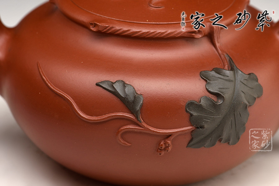 特點:質(zhì)感綿密、緊實細緻,持之扎實沉重、紅潤豔麗,泥中極品,無以倫比;泥胚含少許原礦顆粒,沖淋熱水后色變極大,呈紅中帶紫,養(yǎng)壺易現(xiàn)“包漿”之美。
