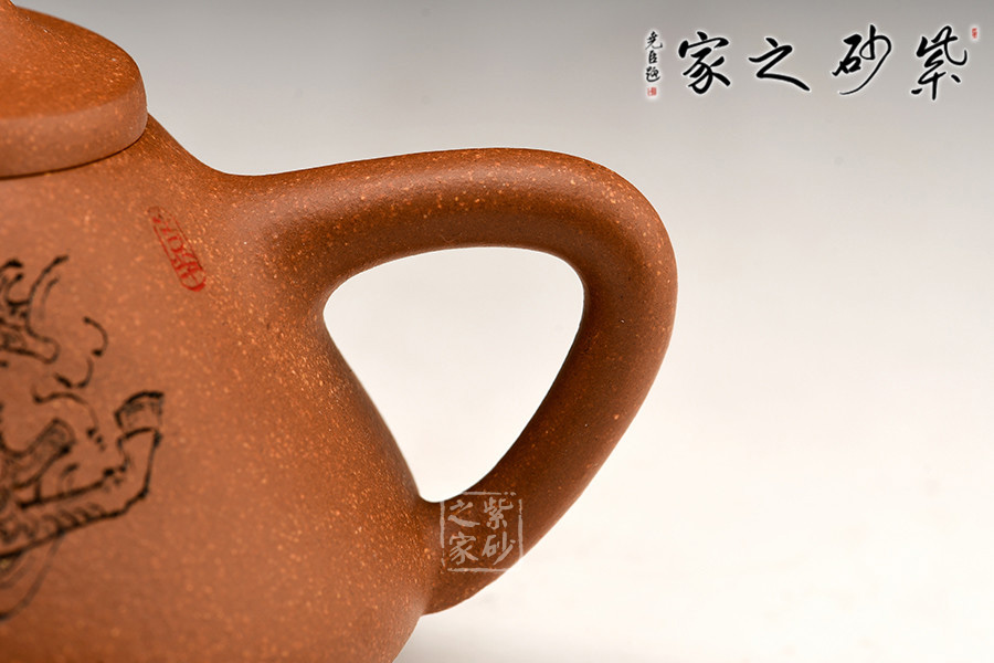 泥性:原礦因含緞泥、紅泥、紫泥等諸多共生礦,陶之后,于深沉之“橙紅色”底上,滿佈五彩斑斕的粗細(xì)、深淺之紅、黃星斑點(diǎn)。