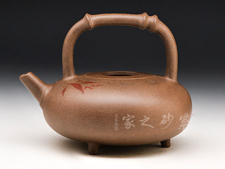 作品以線條勾勒出素潔雅致的風(fēng)韻,在工寫兼?zhèn)渲衅教砹硕U境與情趣,提梁壺型勁挺中有自然和諧的生機,執(zhí)于手,必定有幽靜、俊朗之氣呼出。