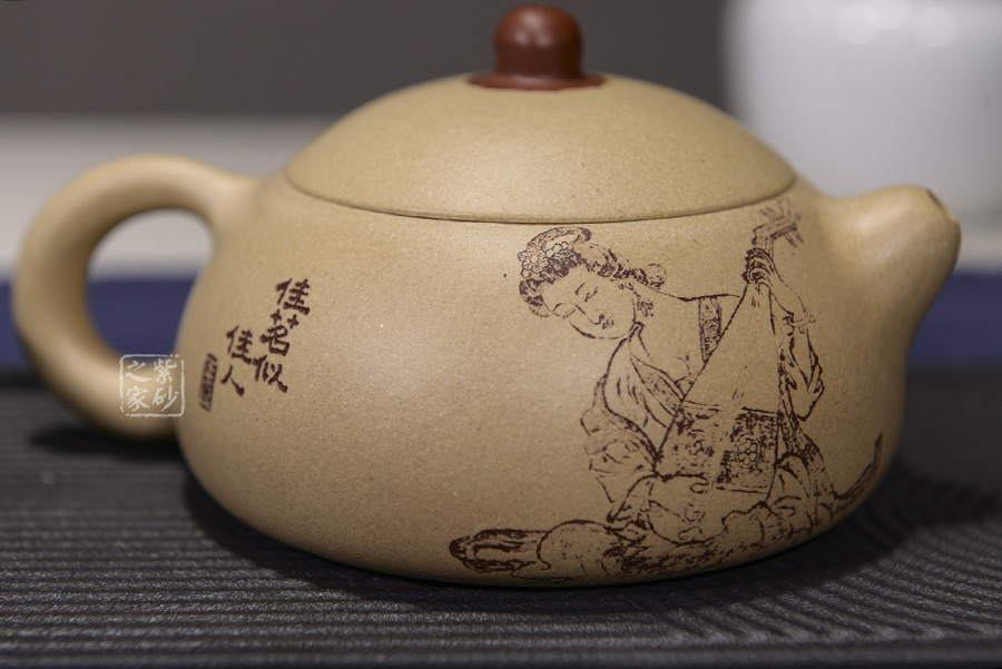B面: 裝飾: 美人刻繪 裝飾者:顧紹培書 裝飾內(nèi)容: “佳茗似佳人”