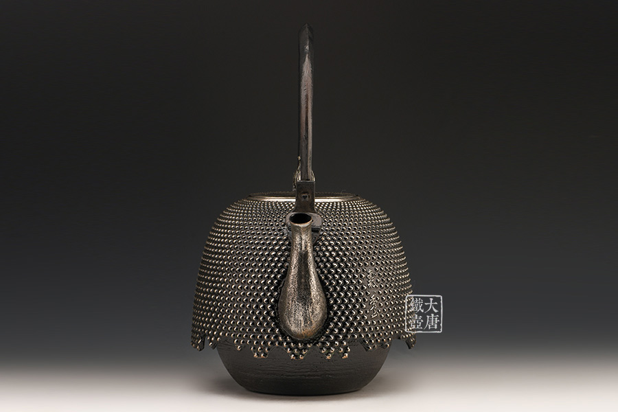 南部是鐵瓶的發(fā)祥地,御釜屋三代仁左衛(wèi)門將“手取釜”改造成鐵瓶,并固定了這種形式。所以從南部鐵瓶中可以明顯地看到茶釜的樣子。南部鐵器的追求古奧深沉的特點(diǎn),大多以黑色來(lái)裝飾鐵瓶的表面,以期達(dá)成如長(zhǎng)期受炭火熏燎的樣子。