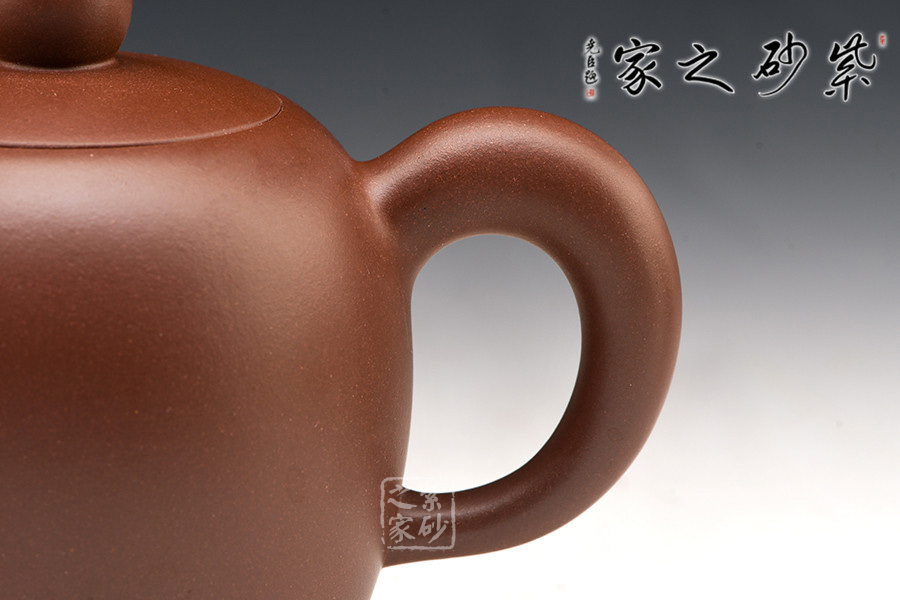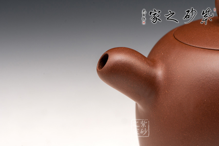 此壺制作上最難之處,在于用全手工打出柔順怡人的線條,及蓋面和壺身的過渡,與配置和諧的流鈕把。