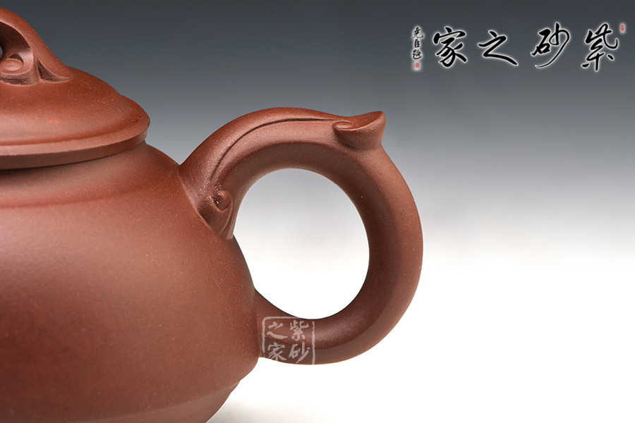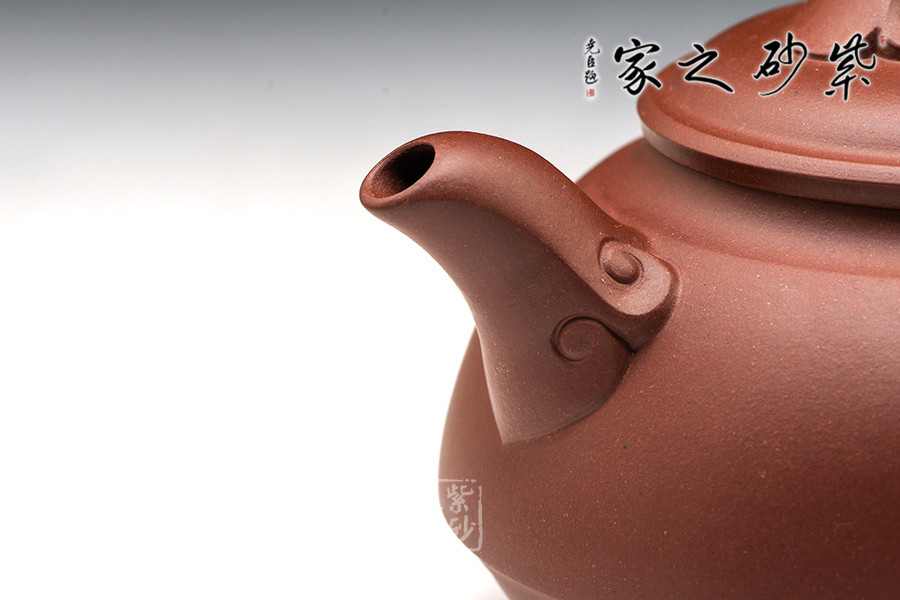 如意壺嘴彎曲有度,微微向下,如漁翁垂釣,與如意制壺把形成對立之勢。壺下腹一圈凹線,提拉壺身,使之在視覺上更加輕靈。