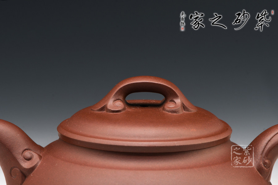 此壺型為傳統(tǒng)壺器之一,形態(tài)頗為優(yōu)美,自壺鈕頂端點開始,弧線向下一次展開,似雨天斗笠鋪開,壺鈕形狀為如意拱形,于壺頂之上,仿佛一小一大兩頂斗笠相接,靈動生氣。