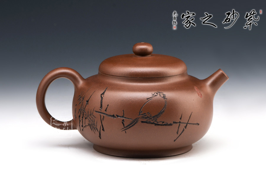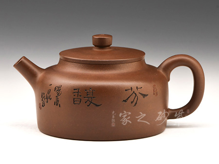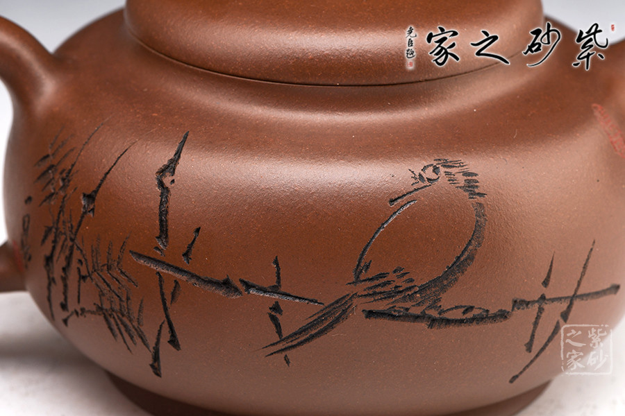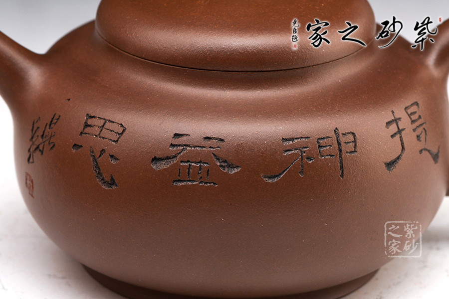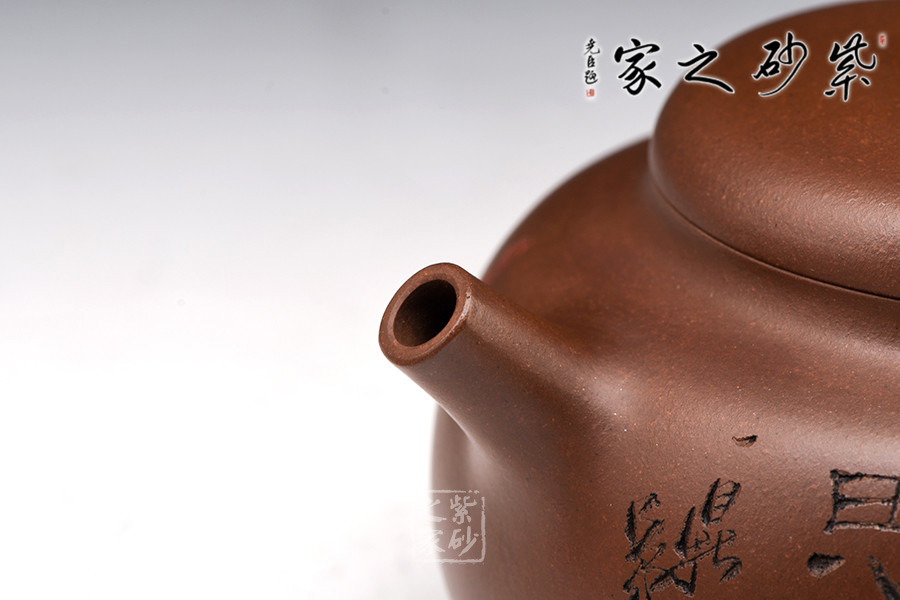 自制自銘:徐赟老師陶刻制壺雙精,師從陶刻大家錢一清和中國工藝美術(shù)大師曹亞麟,又得中國工藝美術(shù)大師鮑志強(qiáng)指點(diǎn)。