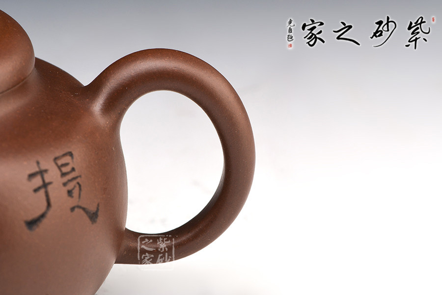 其造型“圓、穩(wěn)、勻、正”,壺之口、的、蓋、肩、把、流、腰的配置比例勻稱流暢,協(xié)調(diào)和諧,極其文雅。胖墩墩的形象,惹人喜愛,造型富有童之靈秀,神氣活現(xiàn)。