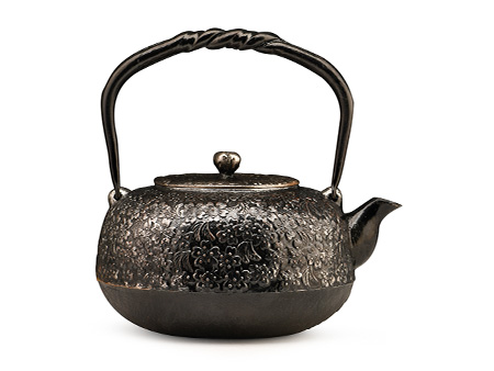 南部是鐵瓶的發(fā)祥地,御釜屋三代仁左衛(wèi)門將“手取釜”改造成鐵瓶,并固定了這種形式。所以從南部鐵瓶中可以明顯地看到茶釜的樣子。南部鐵器的追求古奧深沉的特點,大多以黑色來裝飾鐵瓶的表面,以期達成如長期受炭火熏燎的樣子。