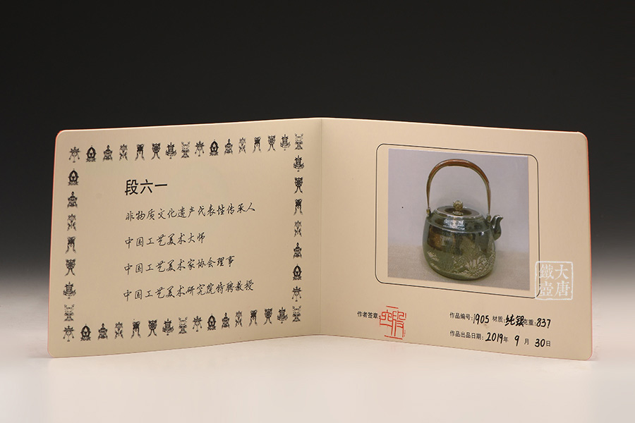 因段六一在工藝美術(shù)領(lǐng)域的成績及對社會做出的貢獻(xiàn),2012年被中國工藝美術(shù)家協(xié)會聘為理事,并命名為金屬工藝設(shè)計(jì)制作與研究高級工藝美術(shù)師。