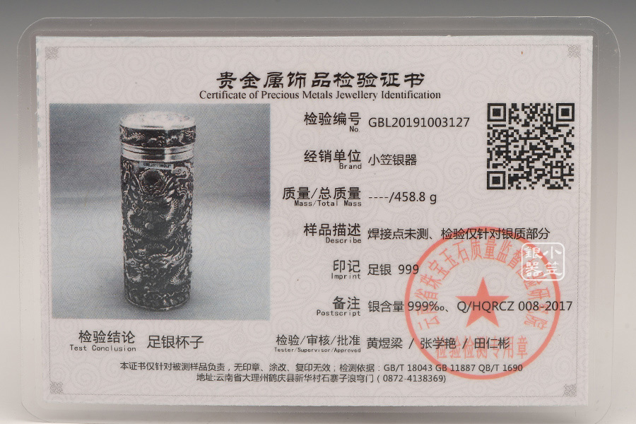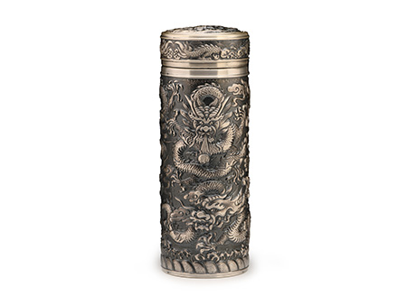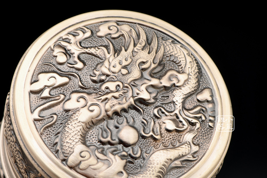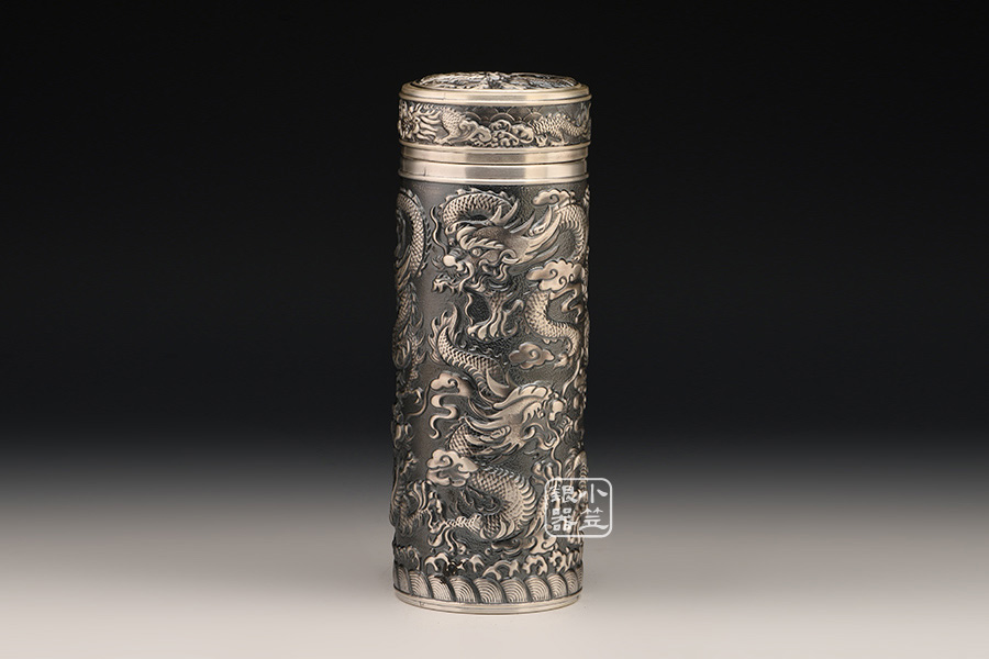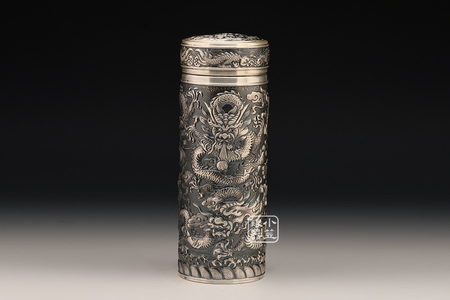 小笠銀器 九龍獻(xiàn)瑞保溫銀杯 熏銀色