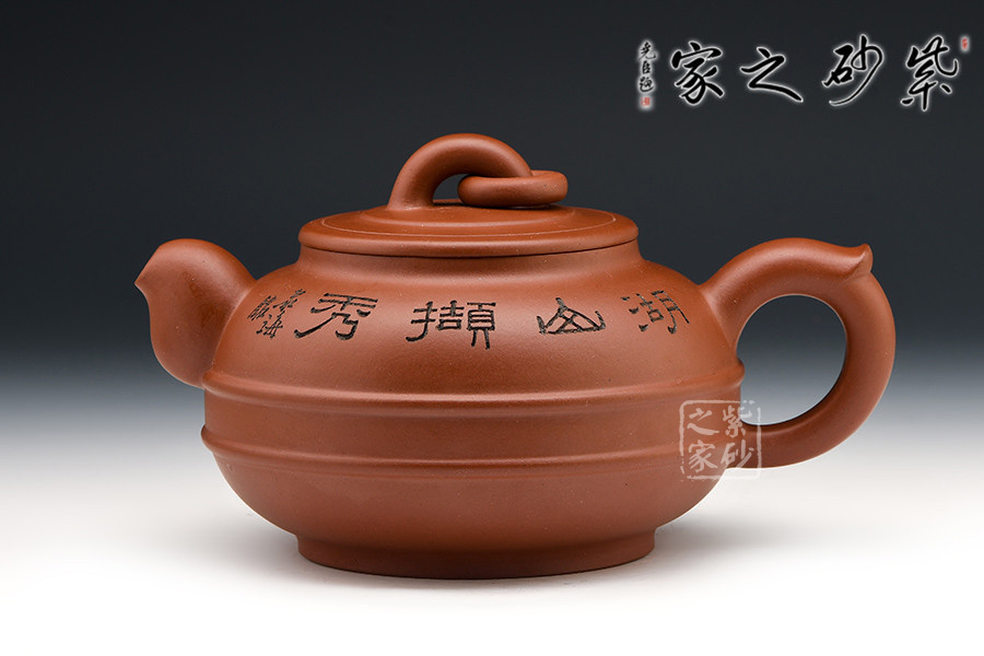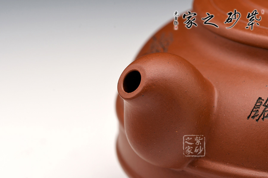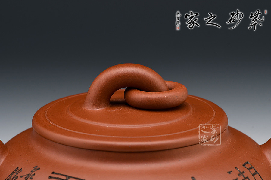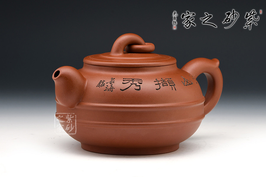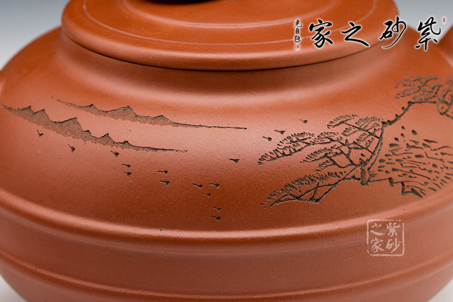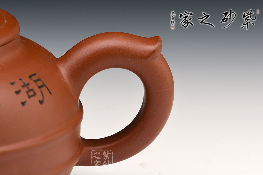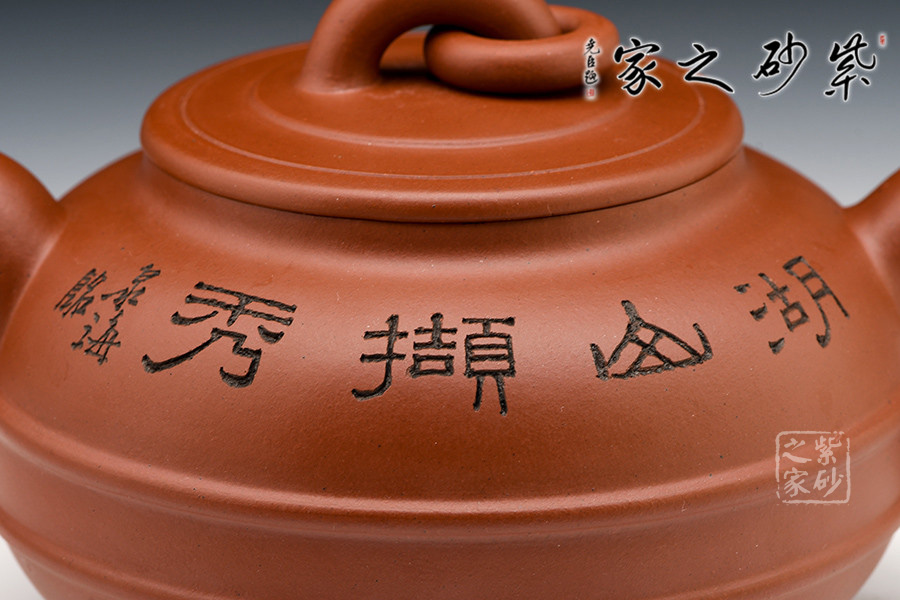 漢風壺身扁圓,短粗流,耳形把,橋型鈕加圈,圈足作底。壺身雙線束腰,氣勢貫通,平穩(wěn)莊重。既有傳統(tǒng)壺型的穩(wěn)重大氣,又有承古學新而展現(xiàn)出的蓬勃生命力。