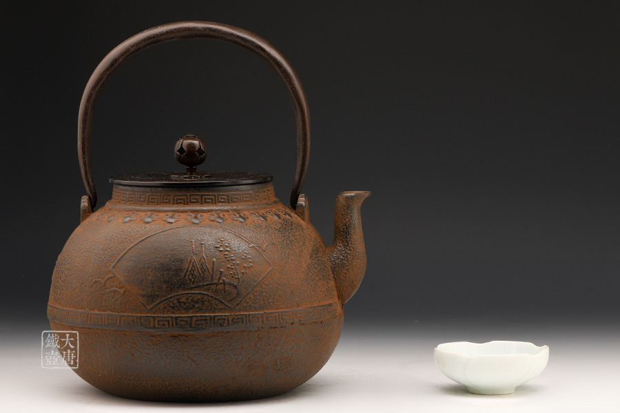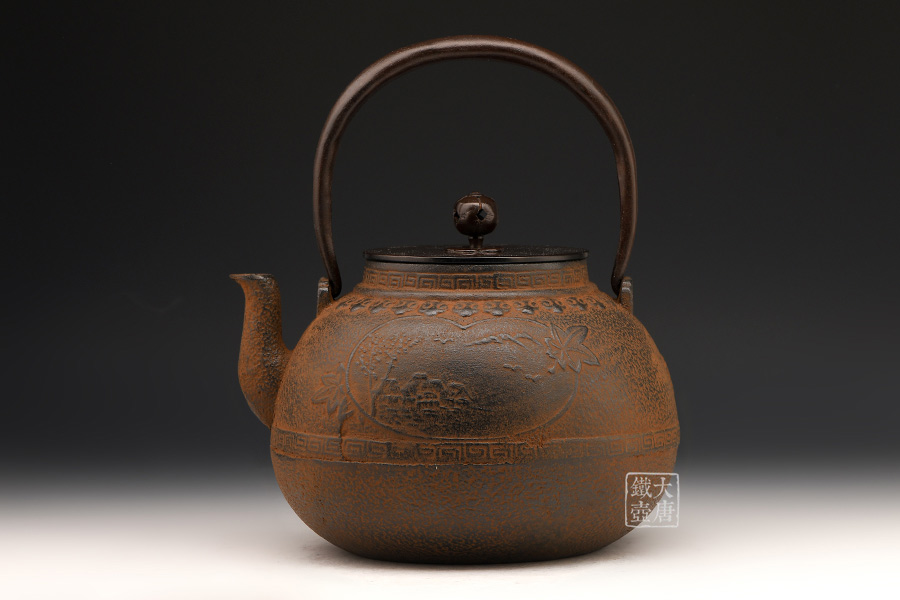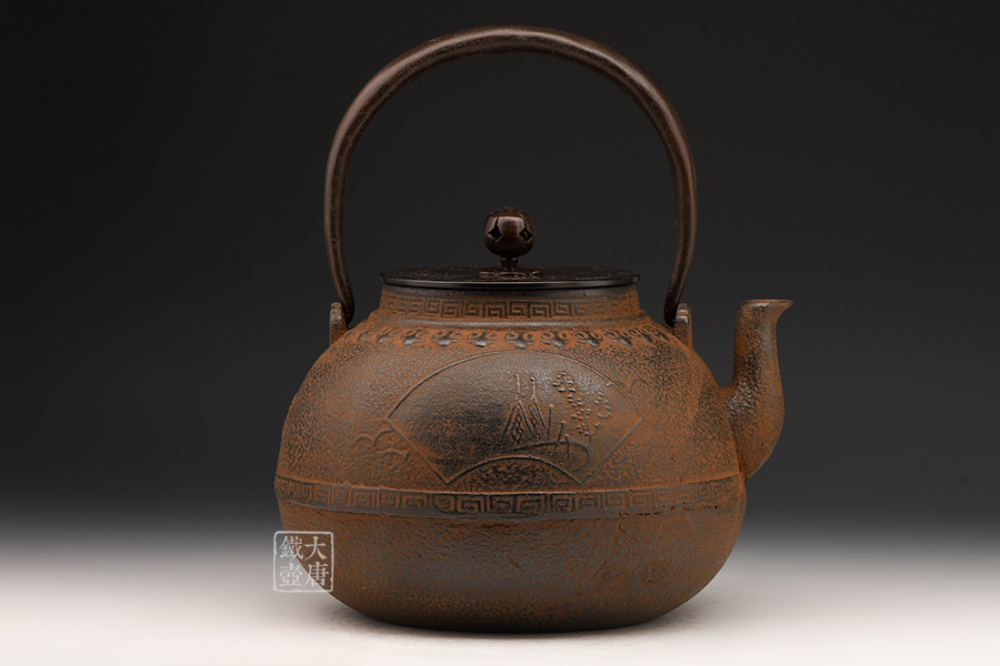 松壽堂 扇面山水紋鐵壺(反) [ 編號:79517 ]
