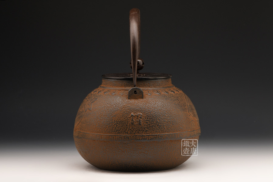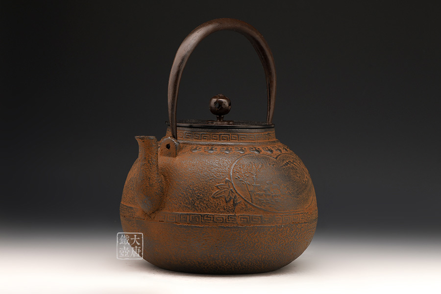 平安松壽堂(即松壽堂、西村松壽堂)是京都鐵瓶(也叫關西鐵壺)的典型代表,明治18年(1885年)由初代西村勝在京都寺町創(chuàng)建。平安松壽堂制作的鐵壺采用銅質壺蓋,壺底內側底部有板狀突起的“鳴金”,壺身或者提梁伴有金銀貴金屬鑲嵌的各式圖案或花紋,與京都寺町附近的龍文堂、雨宮金壽堂、云色堂等共同形成了獨特的京都鑲嵌特色。