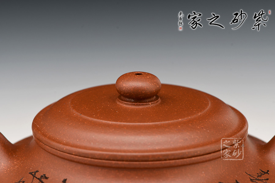 此壺淋漓盡致的呈現(xiàn)了經(jīng)典虛扁“古樸大氣,線條優(yōu)美,簡潔穩(wěn)重,精益求精”的獨(dú)特風(fēng)格。此壺壺底、壺腹、壺口、壺蓋、壺鈕形成了五重圓圈疊加的線條,配以壺把的環(huán)形曲線與壺流微翹的曲線,整個壺由環(huán)環(huán)相扣的優(yōu)美流暢的線條組成,給人以強(qiáng)烈的視覺沖擊。整個壺泛著深邃的光澤,包漿厚美,溫潤如玉,散發(fā)著高貴典雅的氣質(zhì),