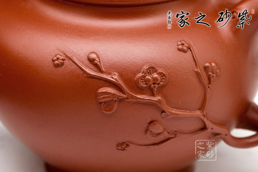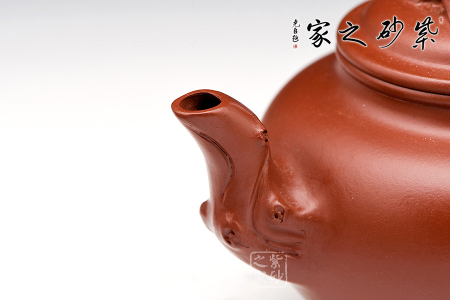 特點:質感綿密、緊實細緻,持之扎實沉重、紅潤豔麗,泥中極品,無以倫比;泥胚含少許原礦顆粒,沖淋熱水后色變極大,呈紅中帶紫,養(yǎng)壺易現“包漿”之美。