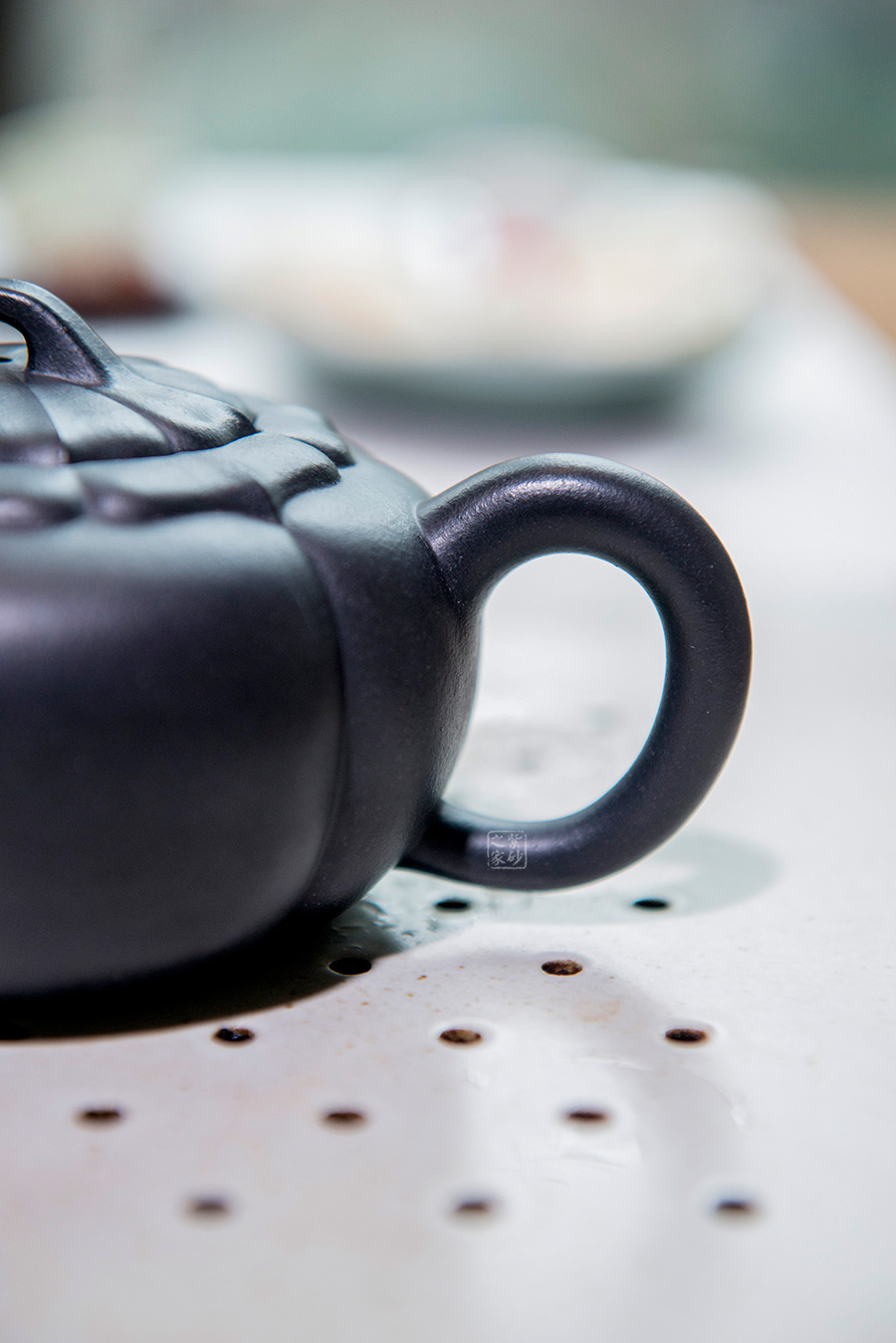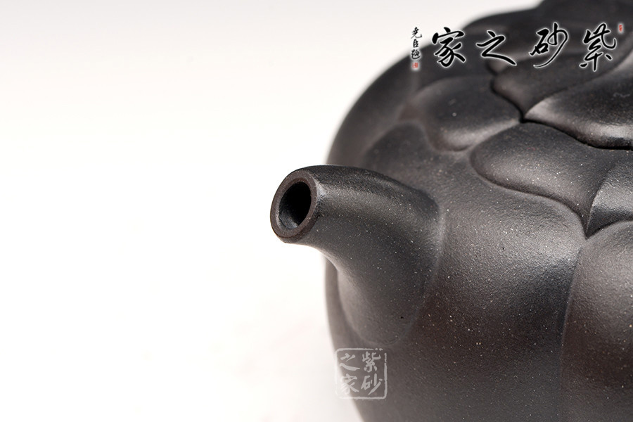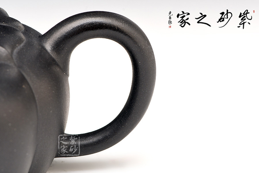該錦葵壺選用原礦底槽青打造,色澤古樸優(yōu)雅,泡養(yǎng)后愈顯素雅之美。壺身筋紋清晰,鼓腹,從壺蓋至壺底,層層筋紋,繁復華美,口蓋銜接緊密,嚴絲合縫,氣密性極佳。壺嘴、壺把均芊細小巧,不突兀,橋形鈕自壺蓋筋紋自然銜接,渾然一體。整個作品造型大方、穩(wěn)健,是實用收藏佳品。
