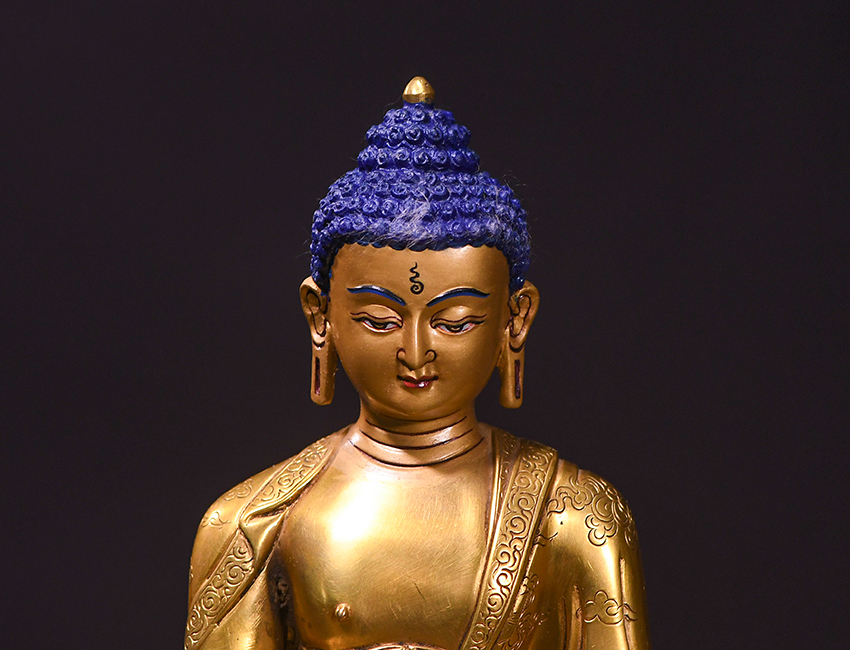 | 唐卡“師傅”開臉,筆路穩重流暢。體現完美天人相,可見佛菩薩慈眉善目,賦予唐卡畫像生的靈氣。 | 細節決定品質,點睛之筆不到位影響整體美觀,五官比例不協調,面目呆板,缺乏靈氣。 |