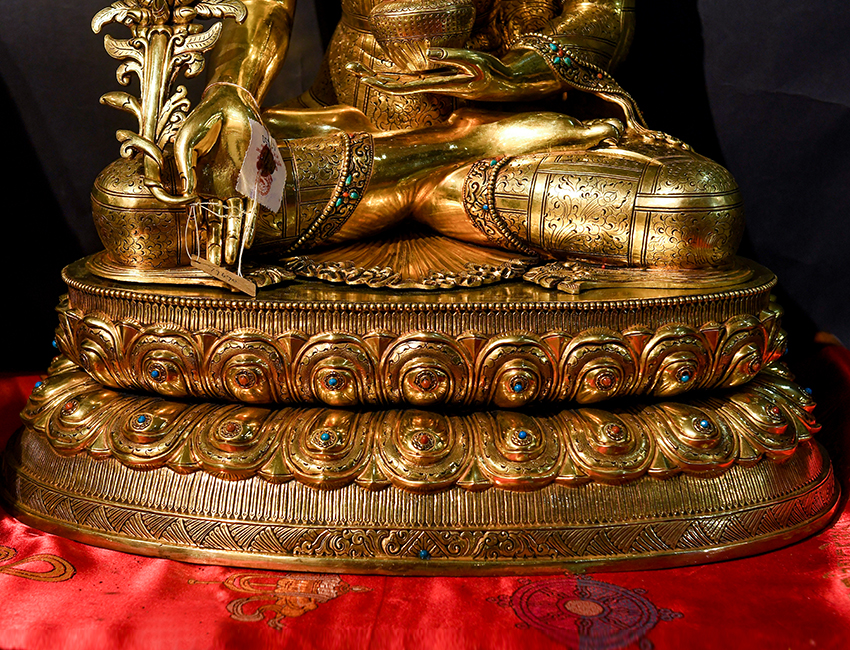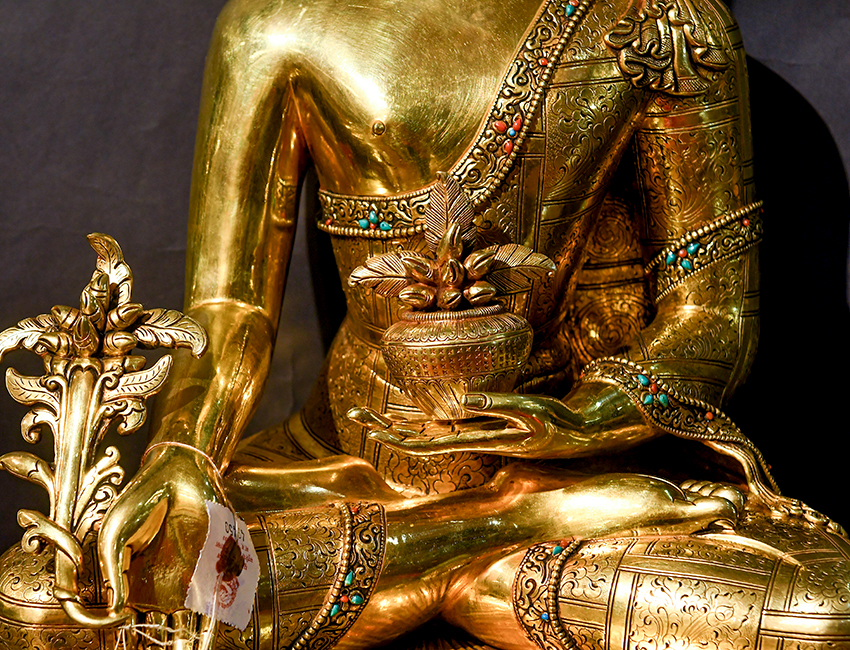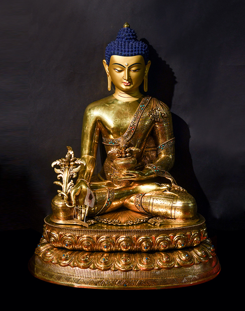 產地:尼泊爾佛像 工藝:紫銅 創作年份:2019 題材:藥師佛 繪制時間:0日 尺寸:*64*64cm 重量:0 g 材質:紫銅 使用場地: