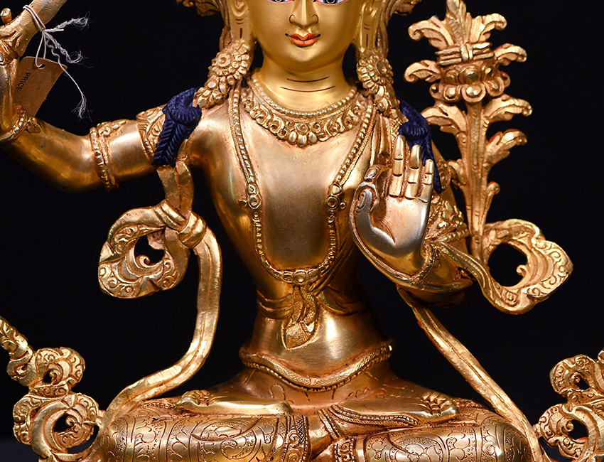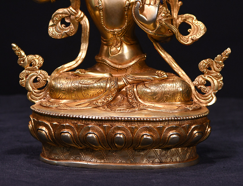 尼泊爾佛像也稱之為密宗佛像或藏傳佛像,尼泊爾佛像是以紫銅為胎體,黃金為外衣,純手工打造的銅鎏金佛像,使用泥金進行開臉,異常殊勝所以尼泊爾佛像價格比國內機器佛像普遍要高一些!
