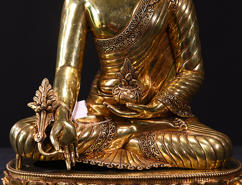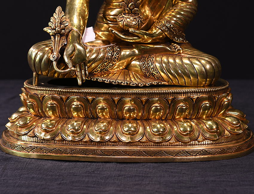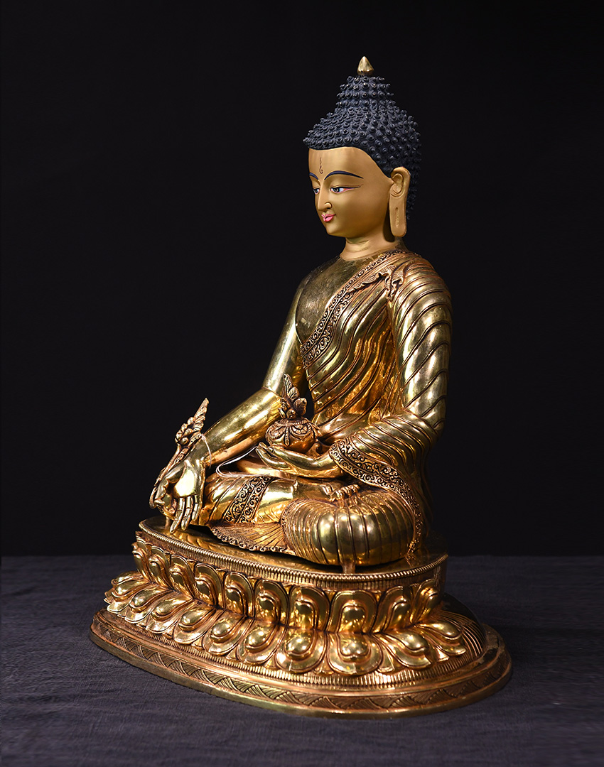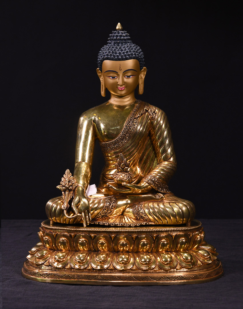 產地:尼泊爾佛像 工藝:紫銅 創作年份:2019 題材:藥師佛 繪制時間:0日 尺寸:*45*45cm 重量:0 g 材質:紫銅 使用場地: