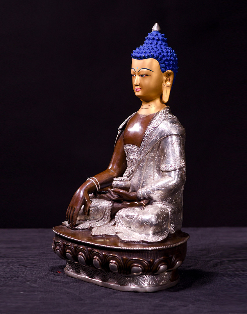尼泊爾佛像也稱之為密宗佛像或藏傳佛像,尼泊爾佛像是以紫銅為胎體,黃金為外衣,純手工打造的銅鎏金佛像,使用泥金進行開臉,異常殊勝所以尼泊爾佛像價格比國內機器佛像普遍要高一些!