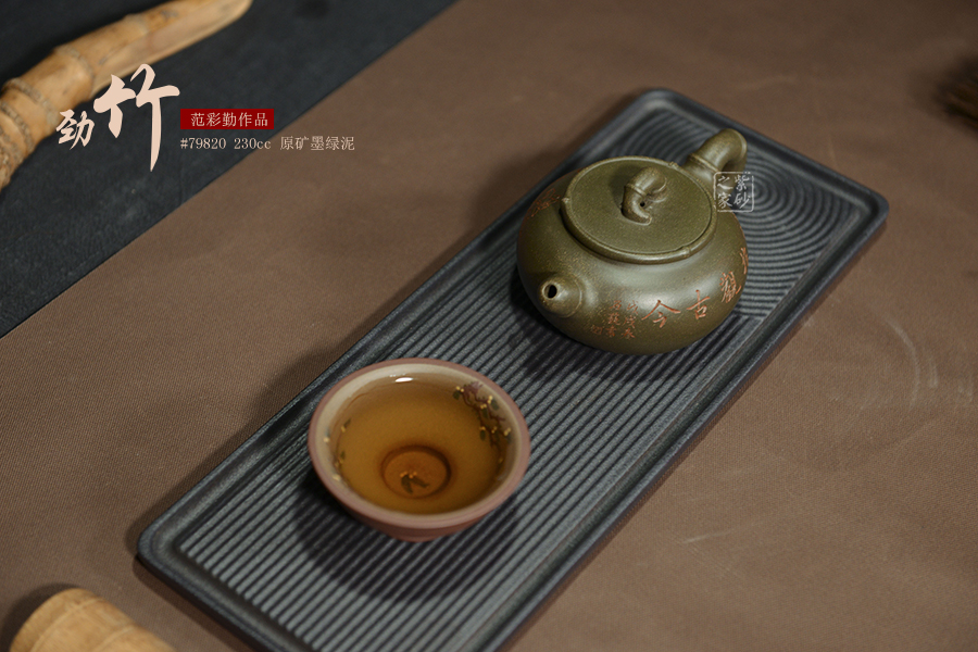 特點:泥色特異,青藍色中略泛綠光,清秀獨特;稍一泡養(yǎng),色調(diào)更形穩(wěn)實,溫潤透明,變化甚巨,玩賞深具成就感。