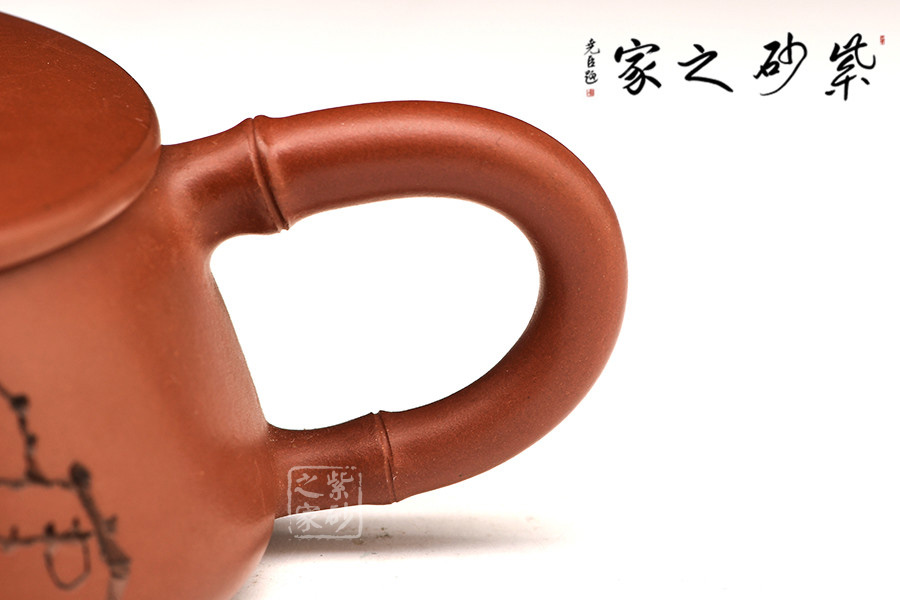 特點(diǎn):質(zhì)感綿密、緊實(shí)細(xì)緻,持之扎實(shí)沉重、紅潤(rùn)豔麗,泥中極品,無(wú)以倫比;泥胚含少許原礦顆粒,沖淋熱水后色變極大,呈紅中帶紫,養(yǎng)壺易現(xiàn)“包漿”之美。