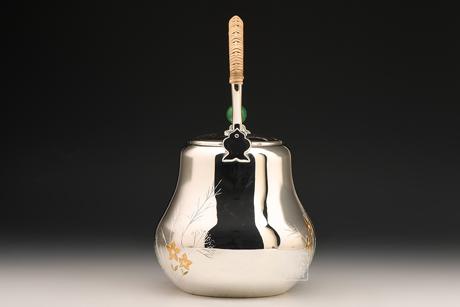 銀祥堂 鶴首4.5寸銀仕上秋草彫金銀壺 [ 編號(hào):79875 ]