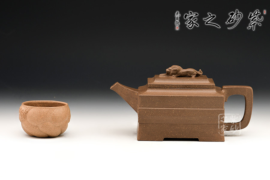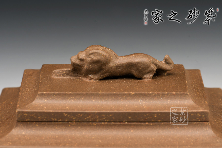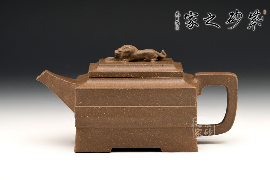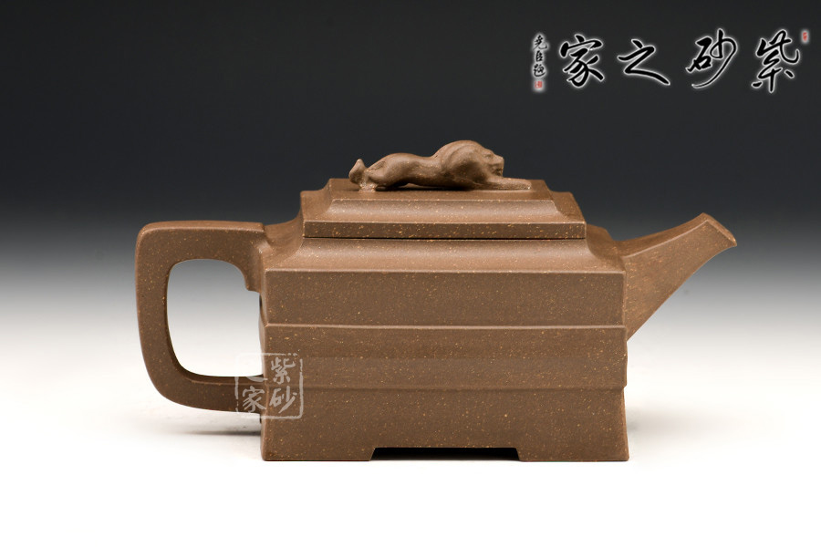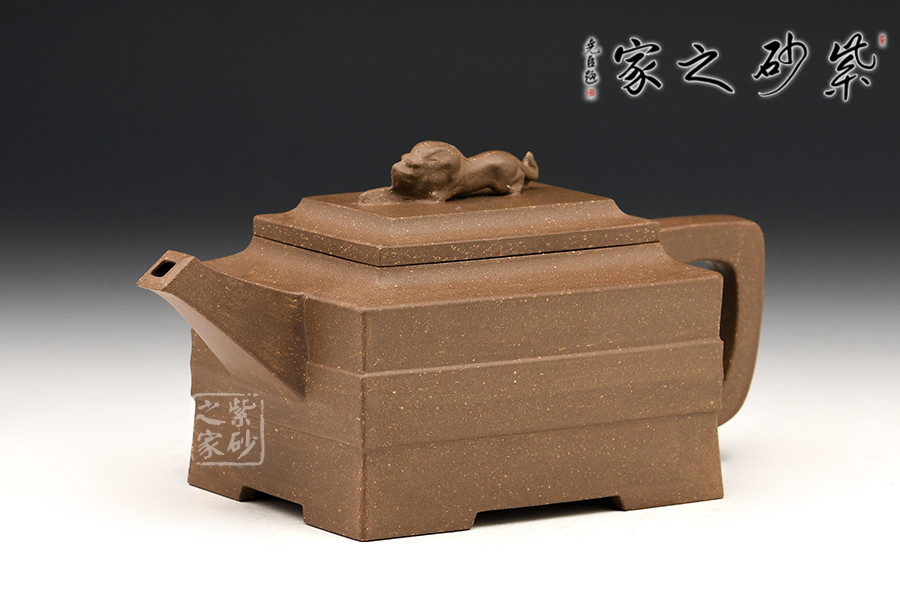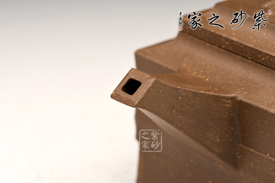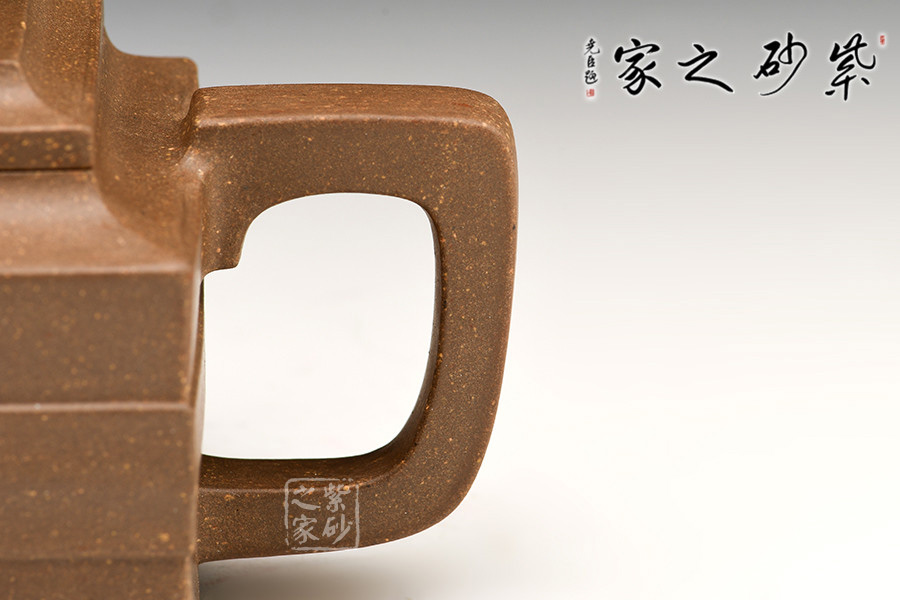 此壺雖為方形,卻不顯呆板凝滯,由四個(gè)平面銜接而成,造型簡(jiǎn)潔古樸,其干凈明快,頗富時(shí)代氣息的線條賦予了壺器雄健與剛正,勇猛與凌厲的氣勢(shì)。