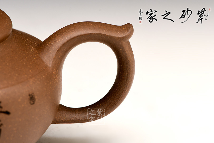 這款壺端莊中自有一種超脫的氣質(zhì),質(zhì)樸中不失一股風(fēng)流雅韻。大平蓋壓肩,更方便沖泡;壺肚較深,利于葉片自然舒展;彎流嘴自然胥出,力度十足,出、斷水極其利索;圈形壺柄呈飛形,大氣得體。整器線條的碰撞與融合,釋放東方雅致之美,大氣雄渾,佳器天成。