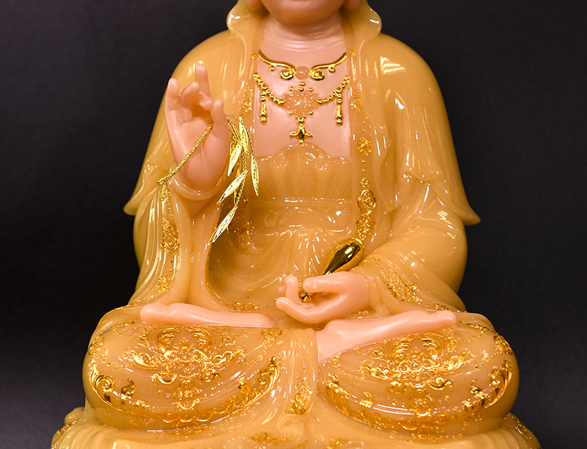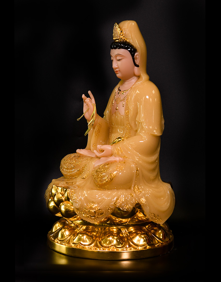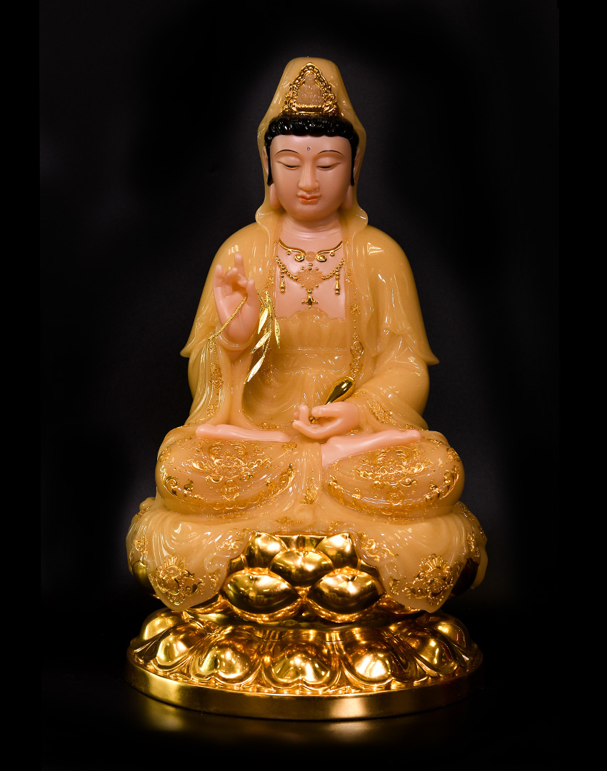 大圣唐卡商城 >> 作品詳情 >> 觀世音菩薩48cm玉黃鑲金