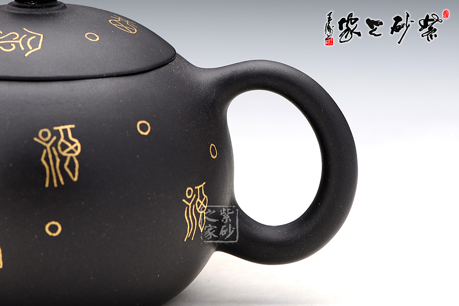 這款原礦黑泥制成的紫砂壺,色澤明潤(rùn),線(xiàn)條流暢,色澤為它鍍上神秘,金絲為它增添貴氣,形態(tài)是它風(fēng)流的韻致。