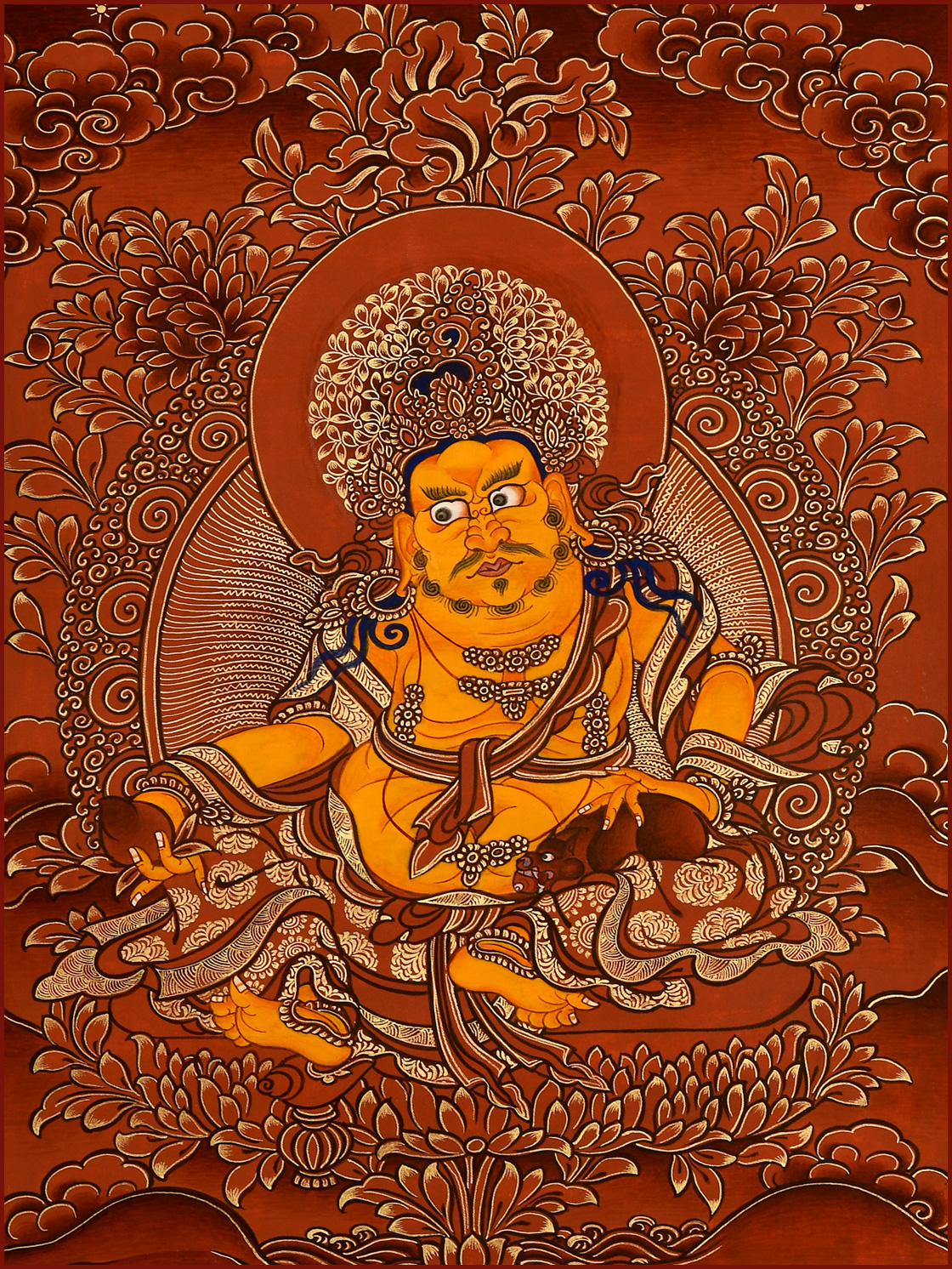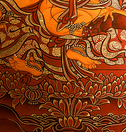 | 唐卡是歷史的瑰寶,現已被例入國家非物質文化遺產名錄,得到了高度的重視和保護。同時由于顏料的珍稀、繪制周期長、工藝復雜大大增強了其珍藏價值。一幅好的作品可遇不可求,近年來唐卡已成為收藏界炙手可熱的藏品。 | 唐卡的形式便于攜帶,其內容體現了藏傳佛教的莊重、神圣、華貴,被稱為“移動的佛像”。同時也是修行者積累善業,追尋心靈的平靜與安寧的一個過程。 | 唐卡的內容包羅萬象,它以圖像的方式承載著藏族文化精髓,是藏族智慧的結晶,廣泛傳播了藏地的文化、歷史和宗教理論。 | 唐卡絢麗的色彩、流暢的線條、嚴謹的結構,都充滿著濃郁的高原和游牧民族風情,無疑是難得的藝術珍品。值得一提的是唐卡繪制顏料全部為天然礦物顏料,畫面效果艷麗,可以保存千年而不變色。 |