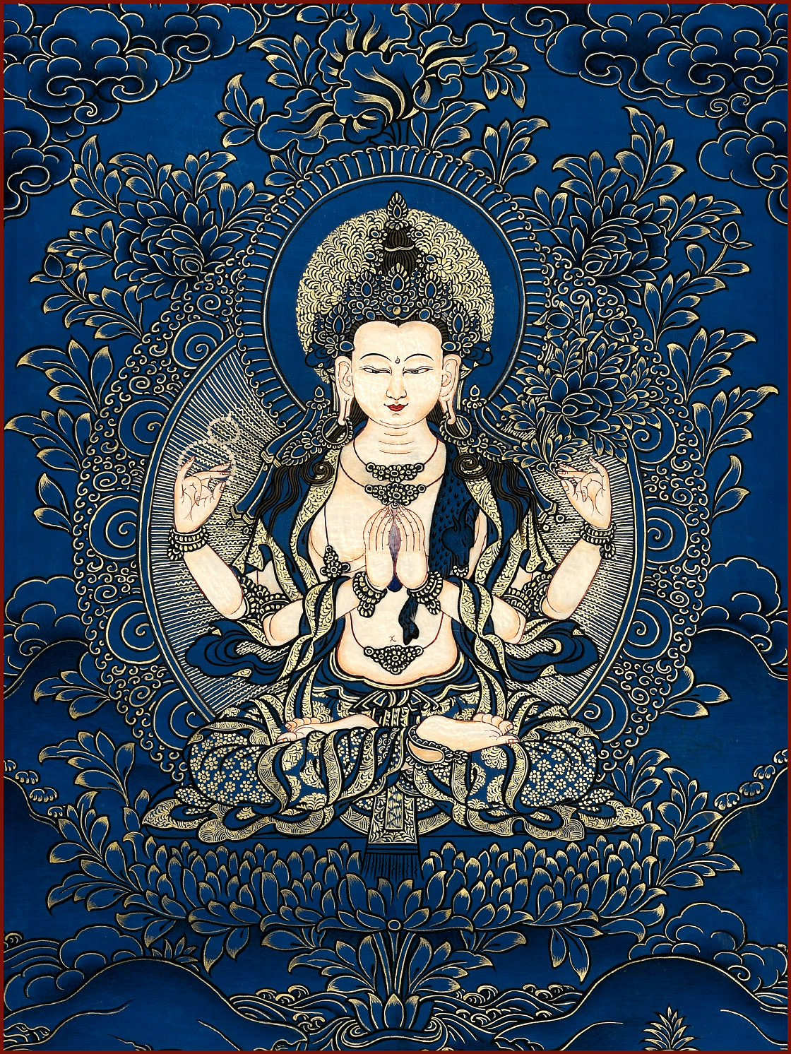 藍唐四臂觀音30*40cm [ 編號:80361 ]