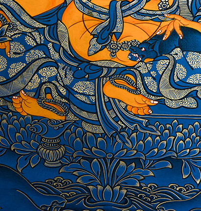 | 唐卡是歷史的瑰寶,現已被例入國家非物質文化遺產名錄,得到了高度的重視和保護。同時由于顏料的珍稀、繪制周期長、工藝復雜大大增強了其珍藏價值。一幅好的作品可遇不可求,近年來唐卡已成為收藏界炙手可熱的藏品。 | 唐卡的形式便于攜帶,其內容體現了藏傳佛教的莊重、神圣、華貴,被稱為“移動的佛像”。同時也是修行者積累善業,追尋心靈的平靜與安寧的一個過程。 | 唐卡的內容包羅萬象,它以圖像的方式承載著藏族文化精髓,是藏族智慧的結晶,廣泛傳播了藏地的文化、歷史和宗教理論。 | 唐卡絢麗的色彩、流暢的線條、嚴謹的結構,都充滿著濃郁的高原和游牧民族風情,無疑是難得的藝術珍品。值得一提的是唐卡繪制顏料全部為天然礦物顏料,畫面效果艷麗,可以保存千年而不變色。 |