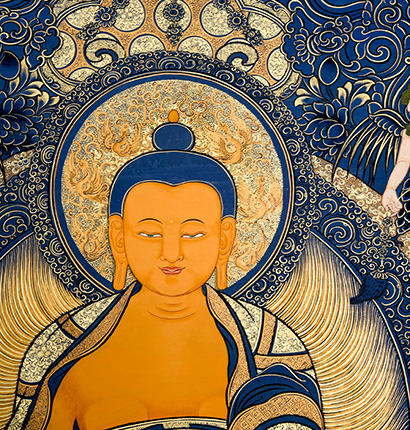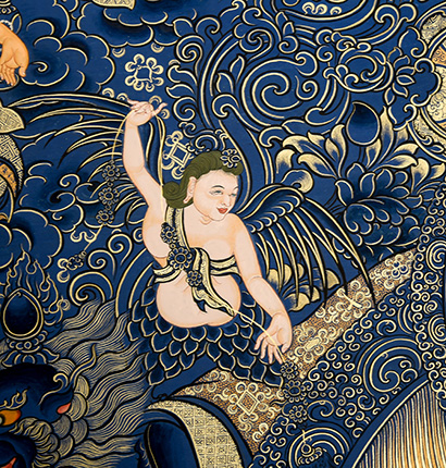 | 唐卡是歷史的瑰寶,現已被例入國家非物質文化遺產名錄,得到了高度的重視和保護。同時由于顏料的珍稀、繪制周期長、工藝復雜大大增強了其珍藏價值。一幅好的作品可遇不可求,近年來唐卡已成為收藏界炙手可熱的藏品。 | 唐卡的形式便于攜帶,其內容體現了藏傳佛教的莊重、神圣、華貴,被稱為“移動的佛像”。同時也是修行者積累善業,追尋心靈的平靜與安寧的一個過程。 | 唐卡的內容包羅萬象,它以圖像的方式承載著藏族文化精髓,是藏族智慧的結晶,廣泛傳播了藏地的文化、歷史和宗教理論。 | 唐卡絢麗的色彩、流暢的線條、嚴謹的結構,都充滿著濃郁的高原和游牧民族風情,無疑是難得的藝術珍品。值得一提的是唐卡繪制顏料全部為天然礦物顏料,畫面效果艷麗,可以保存千年而不變色。 |