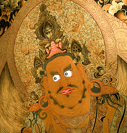 | 唐卡是歷史的瑰寶,現已被例入國家非物質文化遺產名錄,得到了高度的重視和保護。同時由于顏料的珍稀、繪制周期長、工藝復雜大大增強了其珍藏價值。一幅好的作品可遇不可求,近年來唐卡已成為收藏界炙手可熱的藏品。 | 唐卡的形式便于攜帶,其內容體現了藏傳佛教的莊重、神圣、華貴,被稱為“移動的佛像”。同時也是修行者積累善業,追尋心靈的平靜與安寧的一個過程。 | 唐卡的內容包羅萬象,它以圖像的方式承載著藏族文化精髓,是藏族智慧的結晶,廣泛傳播了藏地的文化、歷史和宗教理論。 | 唐卡絢麗的色彩、流暢的線條、嚴謹的結構,都充滿著濃郁的高原和游牧民族風情,無疑是難得的藝術珍品。值得一提的是唐卡繪制顏料全部為天然礦物顏料,畫面效果艷麗,可以保存千年而不變色。 |