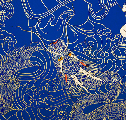 | 純天然礦植物顏料才能畫出的色彩和顆粒感,千年色彩不褪,永葆絢麗。 | 采用化學顏料或噴繪,色彩呆板不自然,容易出現(xiàn)褪色,影響美觀。 |