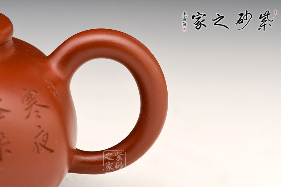 該壺精工細(xì)致,古樸典雅,自然而飽滿,簡(jiǎn)單卻不單調(diào)。身扁、腹鼓、頸高、蓋板平滑,鈕扁圓有勁。嘴、把勻稱,姿態(tài)優(yōu)美,作品古樸圓潤(rùn)、氣脈貫通,是值得收藏的作品!