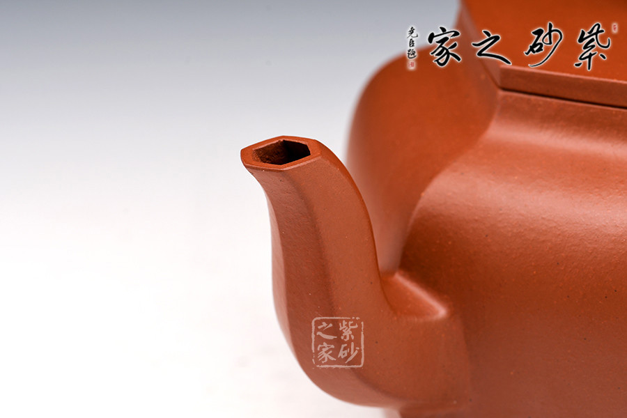 作為歷來最為出色的方器造型之一的六方壺,將方器的精髓都表現(xiàn)得淋漓盡致,壺身與壺蓋緊密相連,而六方轉(zhuǎn)動(dòng)皆吻合,壺鈕與壺身相呼應(yīng),線條流暢明確,周正穩(wěn)健,古樸大氣。二彎嘴挺拔,握把有力,銜接自然行云流水,周身光素,韻味十足。