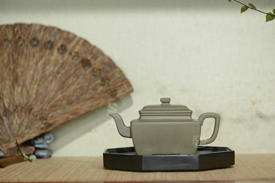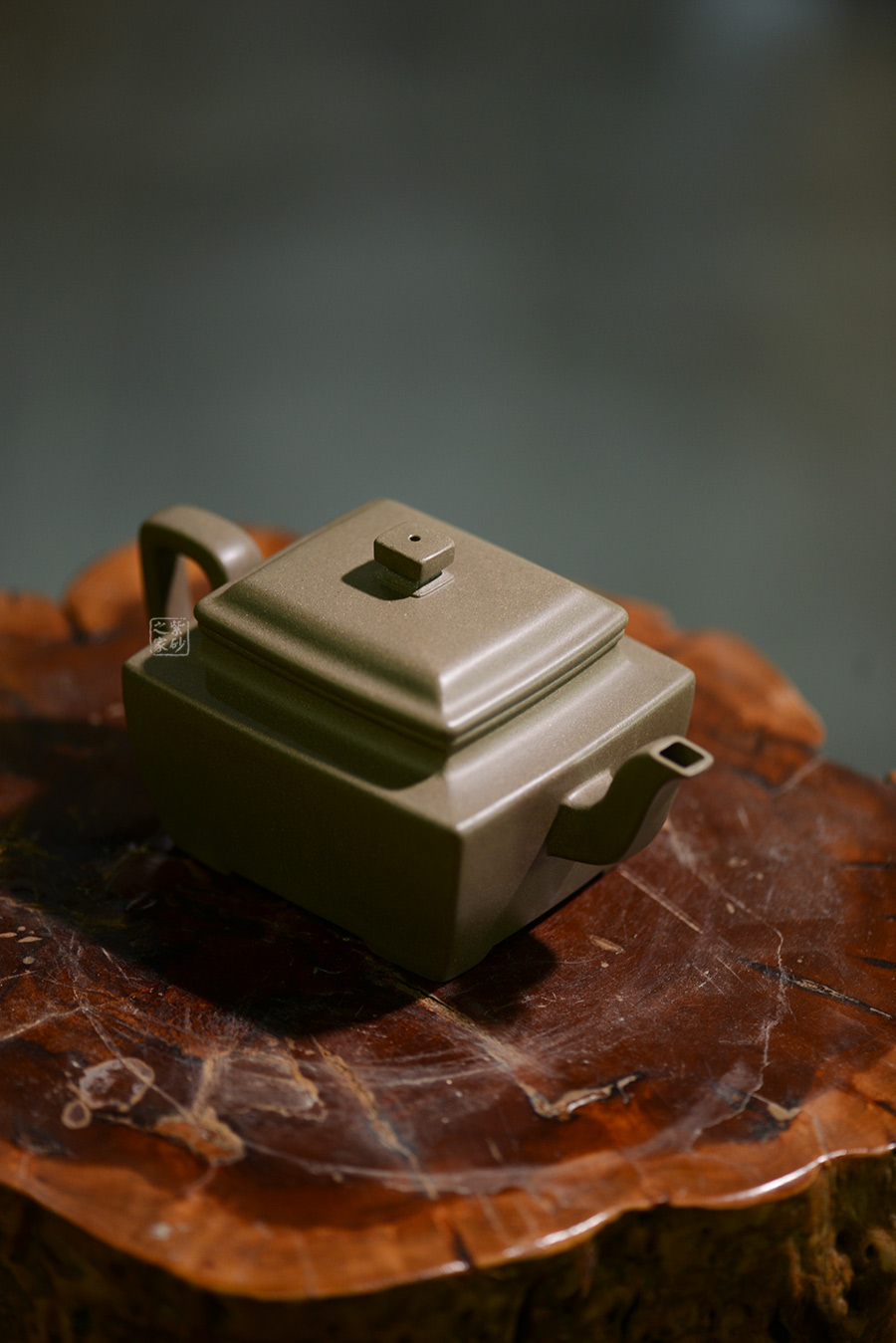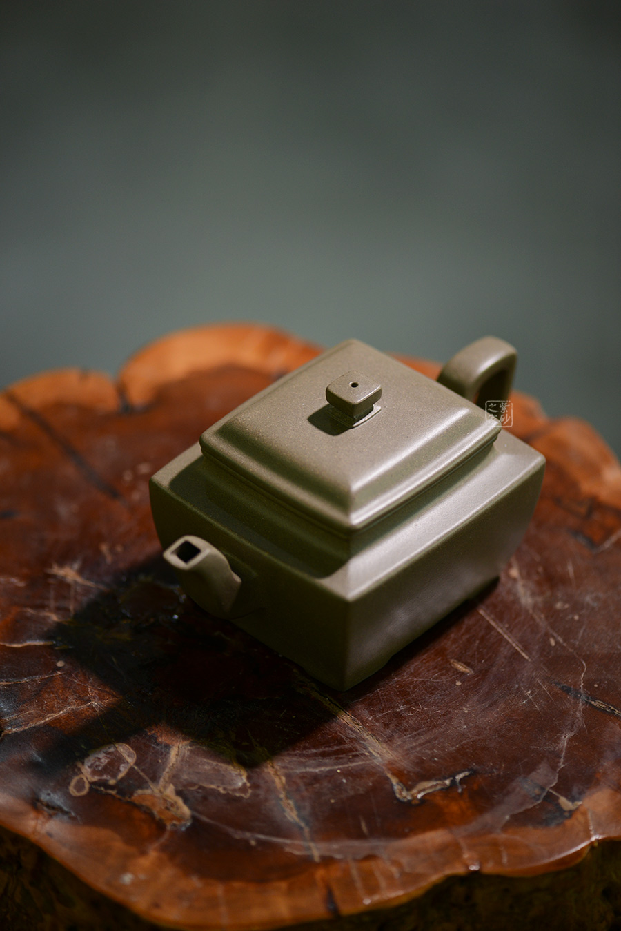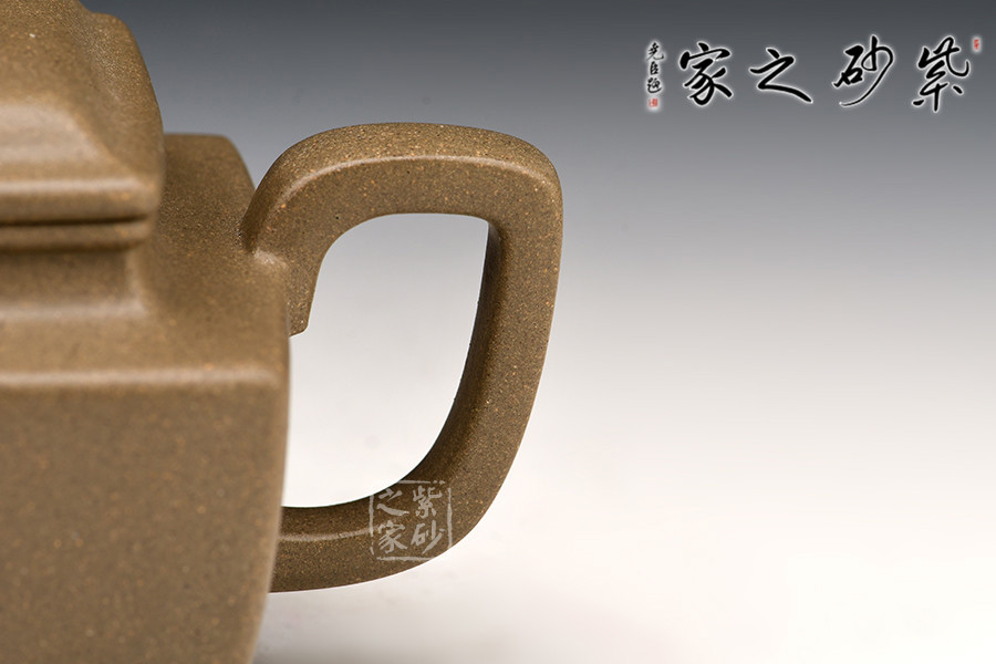 耳形壺鋬四方形線條與壺體、壺流線條相呼應(yīng),轉(zhuǎn)折迂回之間,舒暢自由。流鋬以四方切體,輪廓分明,整體造型比例協(xié)調(diào),于穩(wěn)健中見(jiàn)大氣度。
