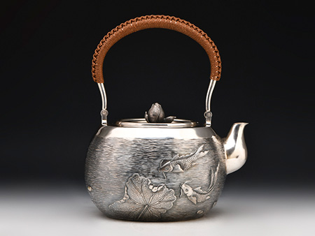 在江戶時代,金壽堂還是以制作鍋、釜為主,到了明治時代以后,開始制作銅器(高岡銅器)及鐵瓶。因其品質(zhì)優(yōu)良,在業(yè)界之中獲得了很高的聲望。后來由于戰(zhàn)爭的關(guān)系,鑄造被迫中斷。到了60年之后的平成時代,市場上對于銅器等金屬器物的需求愈發(fā)膨脹,高岡地區(qū)的職人工匠為了紀(jì)念曾經(jīng)的“金壽堂”,重新以“金壽堂”之名,專注于制作優(yōu)良銅器、銀器以及鐵瓶。又因“高陵”是高岡的別名,于是將堂號取名為“高陵金壽堂”。