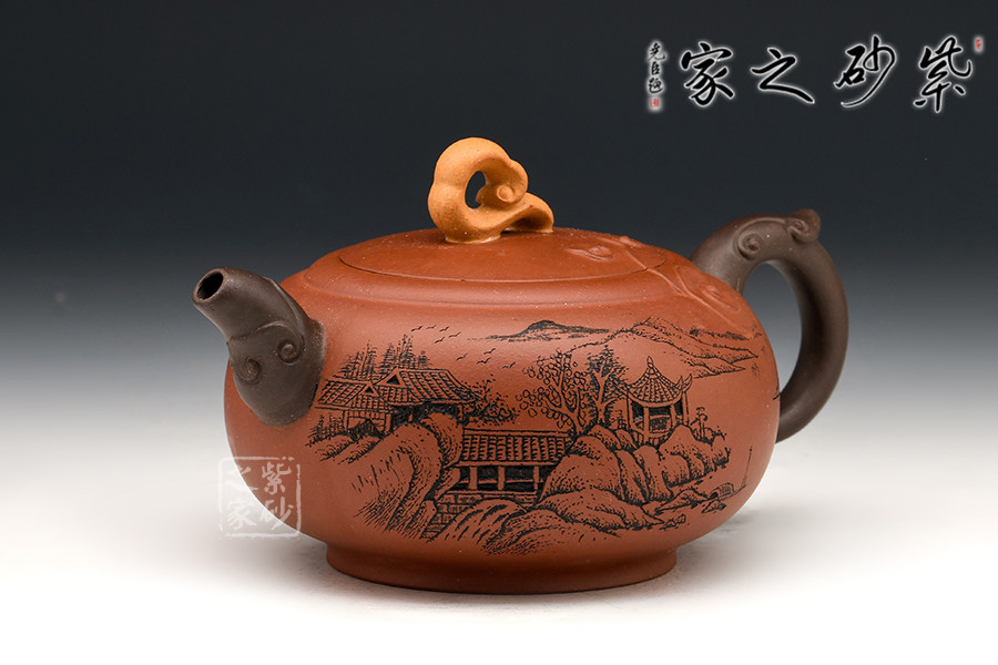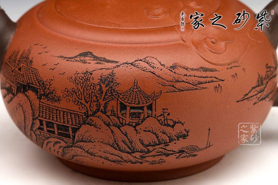 其父朱建偉老師親刻山水詩詞裝飾,壺刻結(jié)合,賞心悅目,收藏價值倍增。