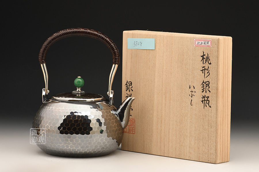 銀祥堂與銀壺名家森川榮月老師曾合作交流設(shè)計(jì)限定款 山·月·鹿銀壺。以及與日展理事,著名雕刻家南部祥云先生合作交流創(chuàng)作了四瑞銀壺。并突破性的制作了耳口出一張打銅壺。