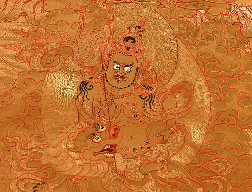 | 唐卡是歷史的瑰寶,現(xiàn)已被例入國家非物質文化遺產(chǎn)名錄,得到了高度的重視和保護。同時由于顏料的珍稀、繪制周期長、工藝復雜大大增強了其珍藏價值。一幅好的作品可遇不可求,近年來唐卡已成為收藏界炙手可熱的藏品。 | 唐卡的形式便于攜帶,其內容體現(xiàn)了藏傳佛教的莊重、神圣、華貴,被稱為“移動的佛像”。同時也是修行者積累善業(yè),追尋心靈的平靜與安寧的一個過程。 | 唐卡的內容包羅萬象,它以圖像的方式承載著藏族文化精髓,是藏族智慧的結晶,廣泛傳播了藏地的文化、歷史和宗教理論。 | 唐卡絢麗的色彩、流暢的線條、嚴謹?shù)慕Y構,都充滿著濃郁的高原和游牧民族風情,無疑是難得的藝術珍品。值得一提的是唐卡繪制顏料全部為天然礦物顏料,畫面效果艷麗,可以保存千年而不變色。 |
