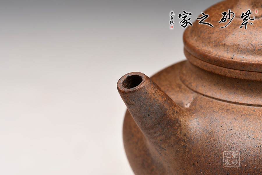 方圓中正,工巧逼真,流、把形式和壺的高身相協(xié)調(diào),布局均衡規(guī)范,整個壺型如同一朵即將盛開的花蕾,甚是精致有型。