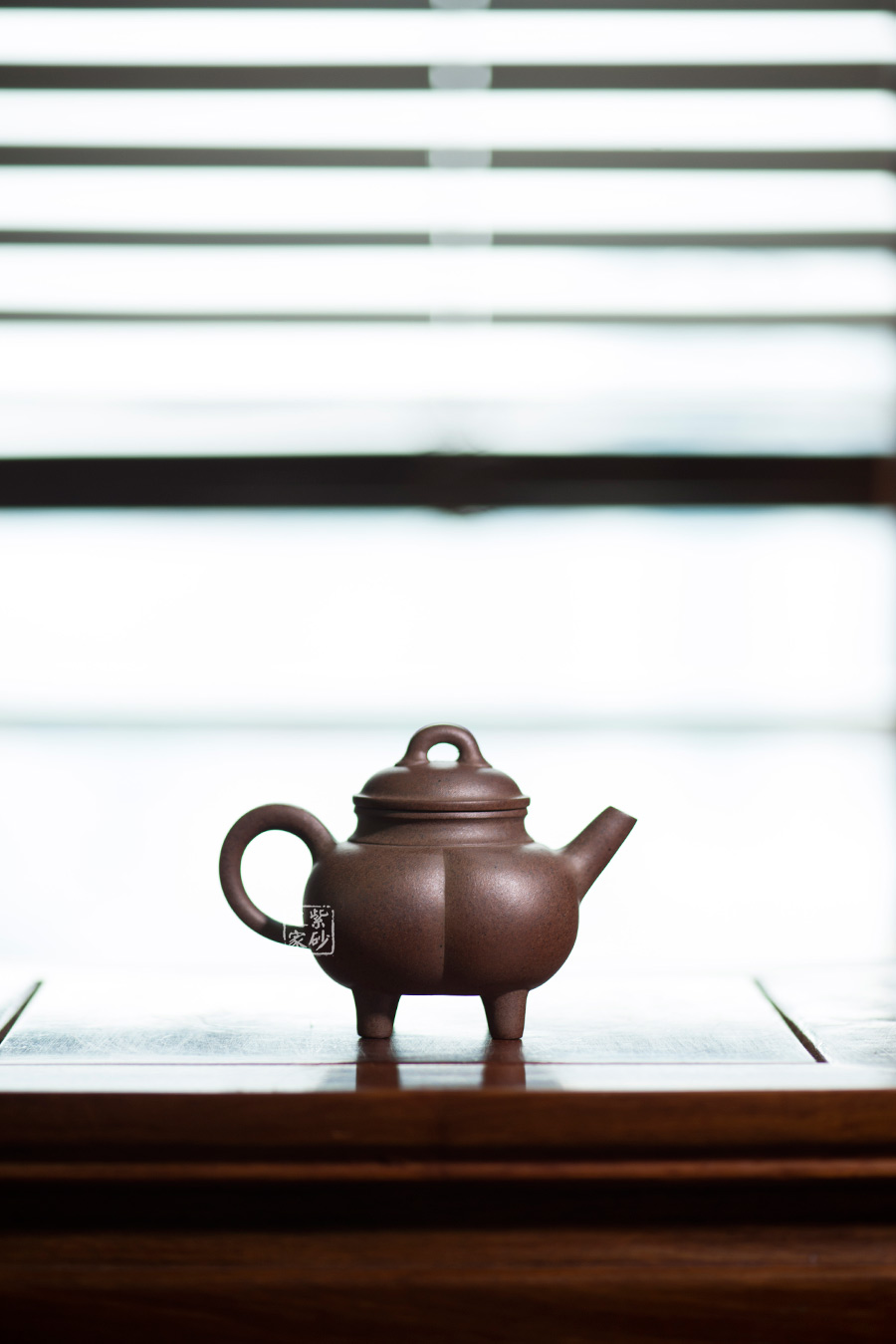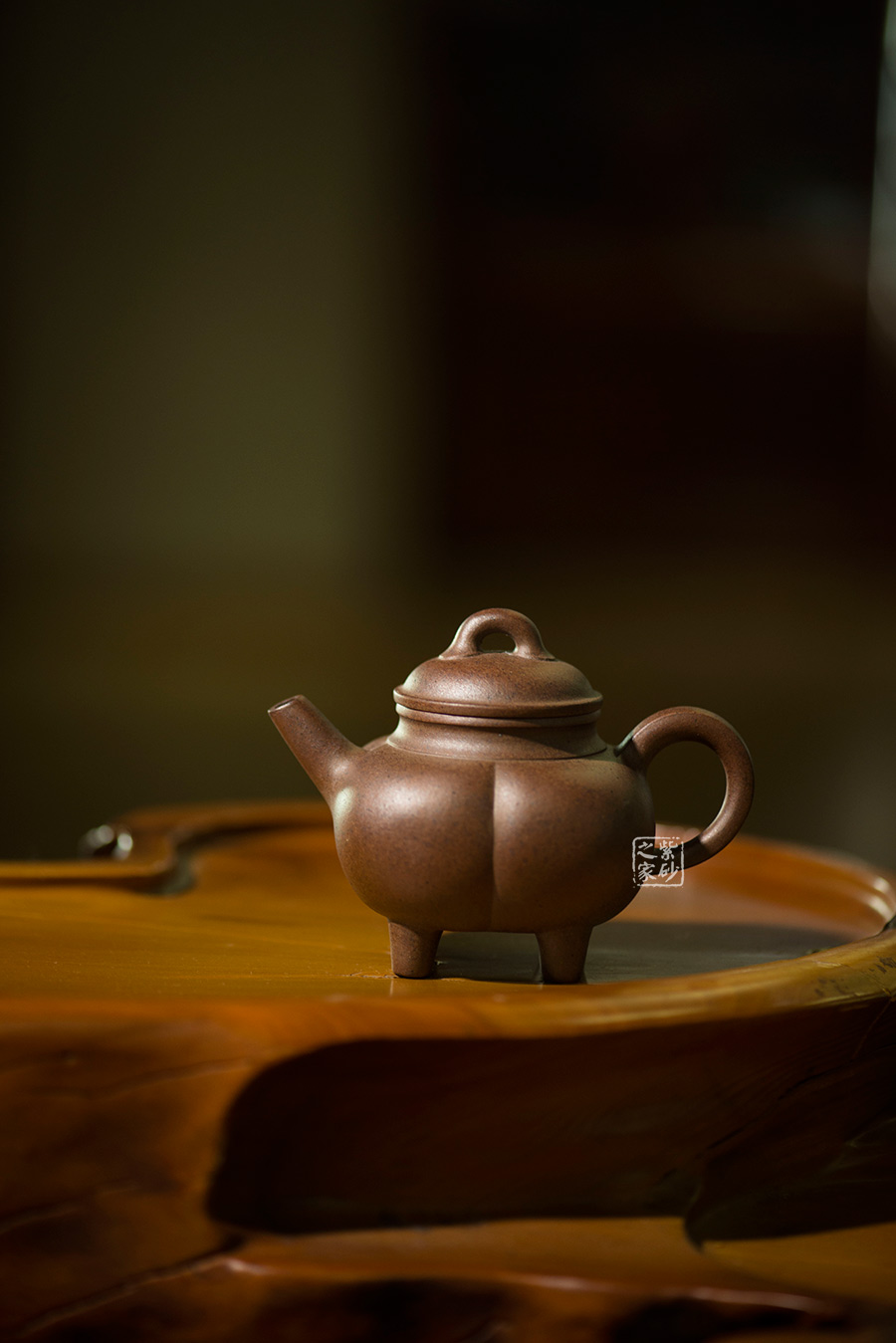 蒯良榮先生制壺的泥料都是自己到泥礦宕口親手挑選,其選泥的過程簡直可與淘金相媲美。成堆的泥料他選不中,往往空手而返,偶爾在那不經(jīng)意的角落,發(fā)現(xiàn)一星半點合意的泥塊如獲至寶,捧回家中分開別類貼上標(biāo)簽,露天存放使其陳腐,腐熟極致,再專門用石磨磨成泥漿,而后再用篩濾,再磨再濾。精益求精,在此可謂細(xì)益求細(xì)。臺灣客戶用手捻之,嘆曰:泥中極品!良榮先生藝海耕耘四十余載,集原料選配,設(shè)計,創(chuàng)作和燒成技藝于一身。他的作品選型優(yōu)雅,線條挺括,充滿神韻。他創(chuàng)作的各種朱泥小品壺享譽(yù)國內(nèi)及日本、韓國、加拿大等國。他特別擅長制作筋紋器,其代表作“菊瓣元條”、“葵掇球”、“對角如意”在《天地方圓》,《世界藝術(shù)家》,《鑒賞珍玩》,《紫泥新韻》,《壺魂》等多種報刊雜志上發(fā)表刊登。