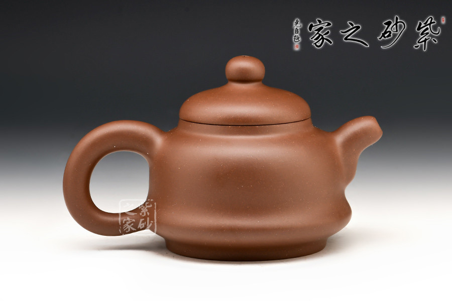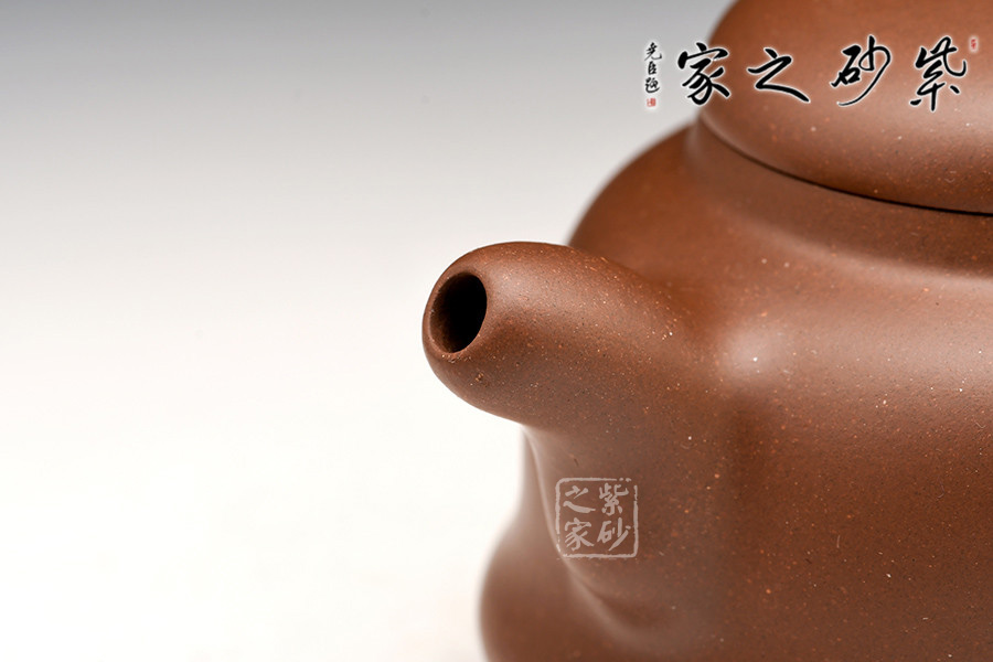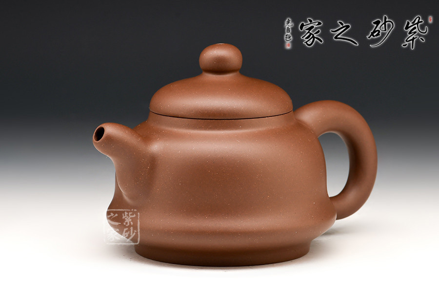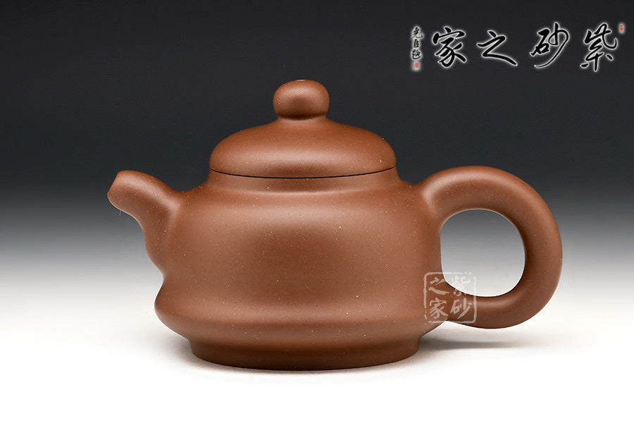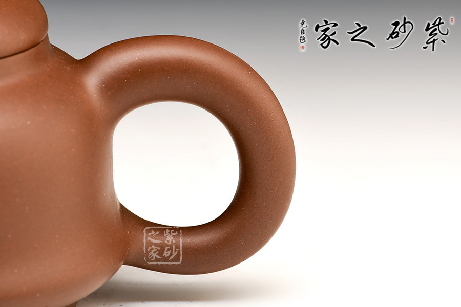 這款“古鐘”,以古代鐘為形,壺身輪廓柔和,比例協(xié)調(diào)。壺底加圈足,和壺頸部上下對應(yīng),優(yōu)雅氣韻由此頓生。壺蓋飽滿圓潤鼓起,蓋上的圓珠壺鈕圓滑可愛,精妙可人。彎嘴胥出自然,出、斷水利落,圈形壺把形態(tài)優(yōu)美,與壺嘴兩相對應(yīng),更顯此壺特別的味道。